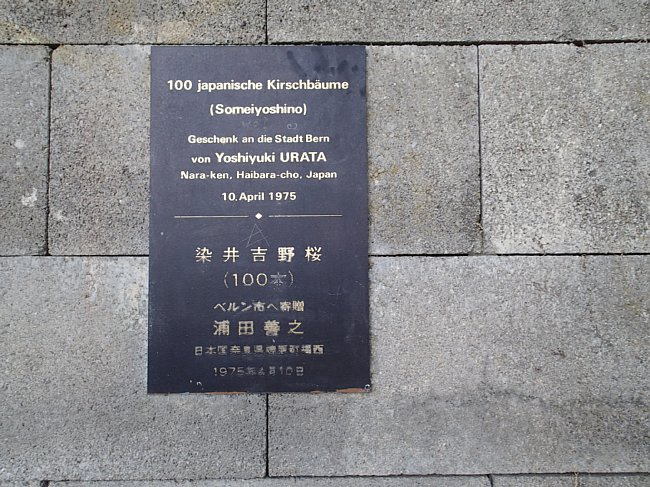 1975年に奈良県からベルンのバラ園に寄贈された100本のソメイヨシノ