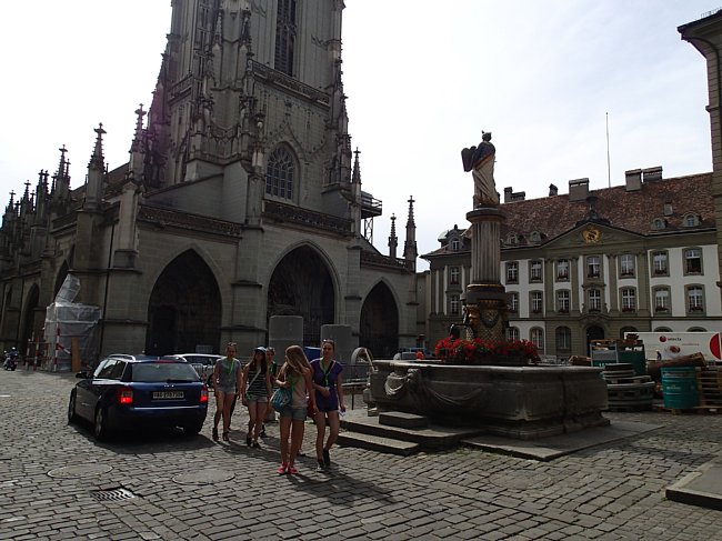 大聖堂に到着、大聖堂前広場のモーゼ像の噴水