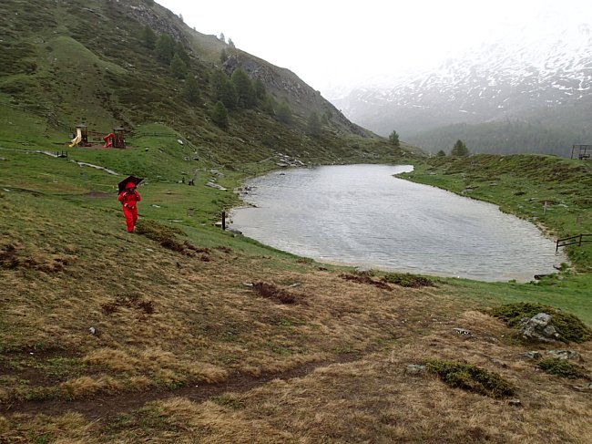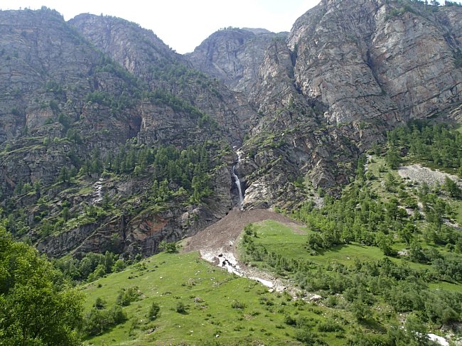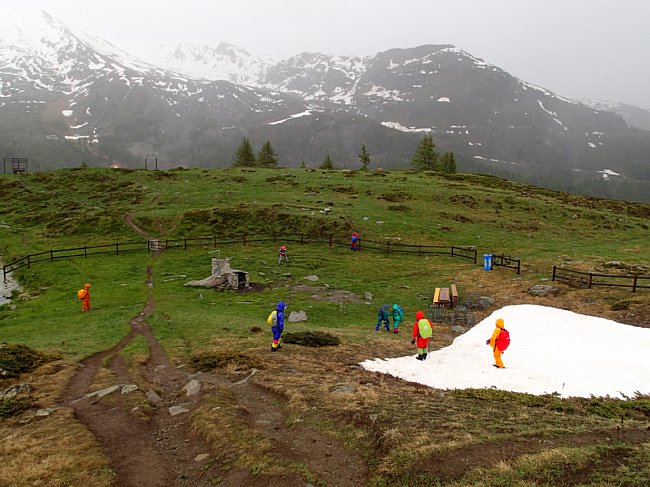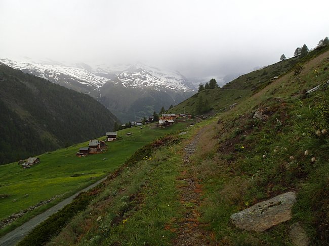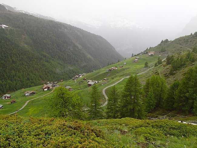 今日はアルメントフーベルからノースフェーストレールを歩いてミューレンに下る予定だったが、朝から小雨のためアルメントフーベルから花の谷を歩いて直接ミューレンに下った。