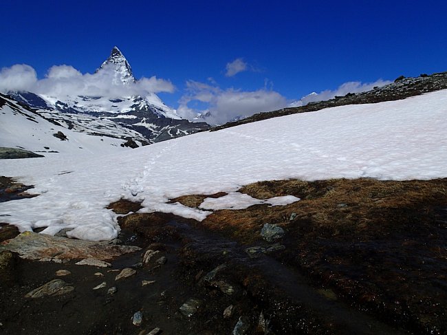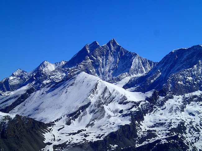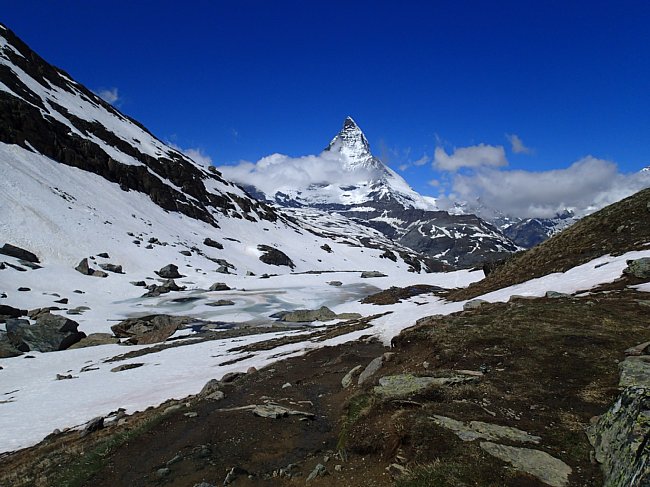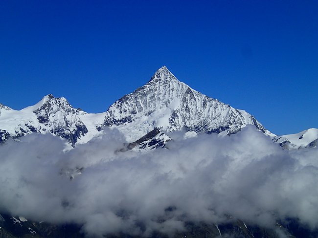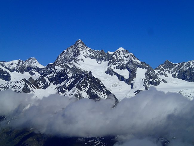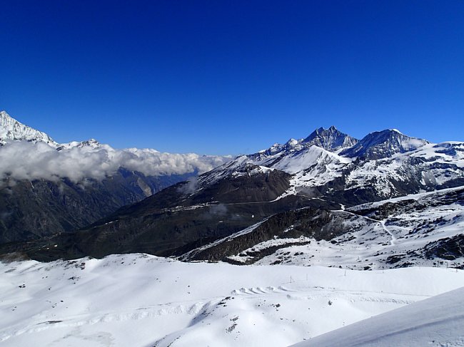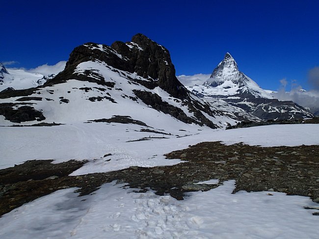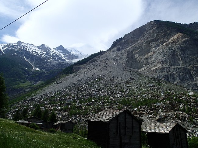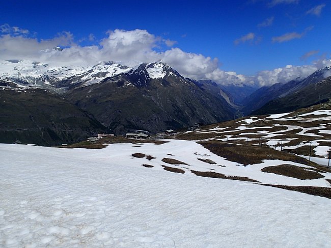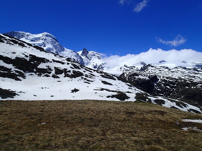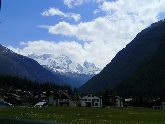 テッシュの村の奥にブライトホルンとクラインマッターホルン
