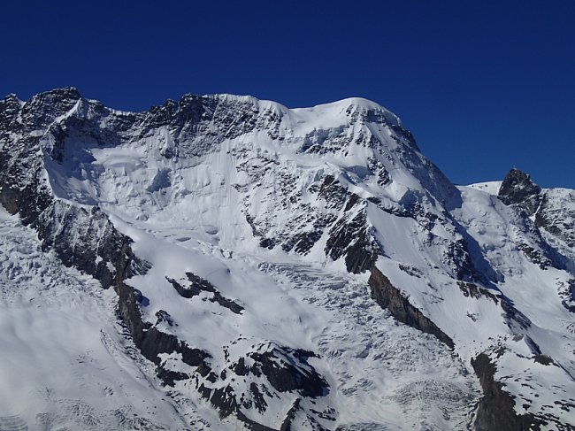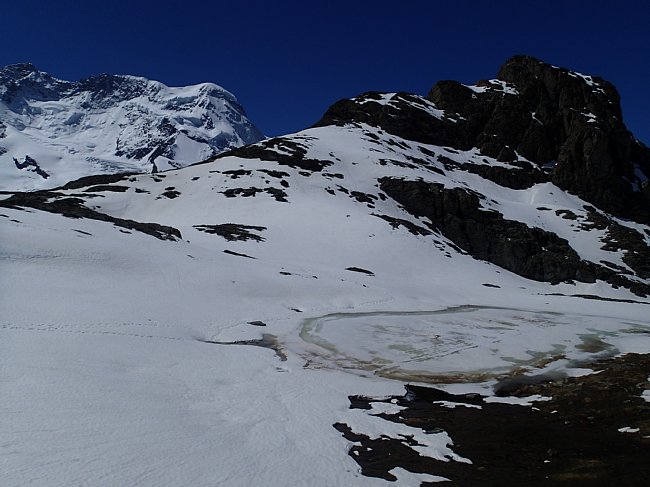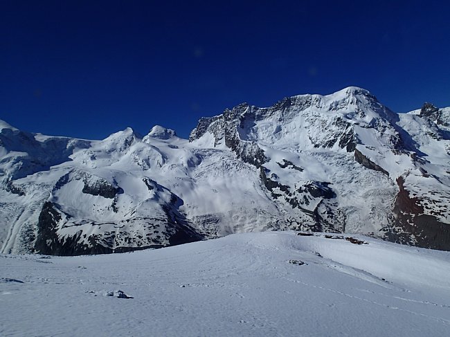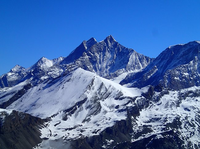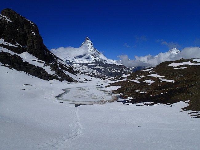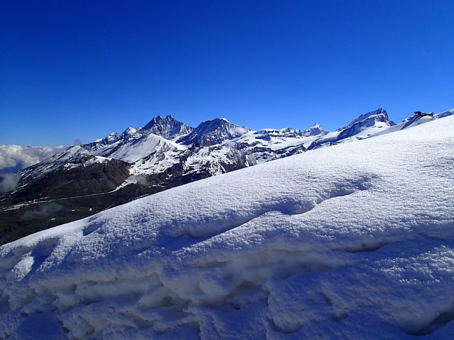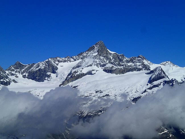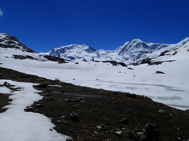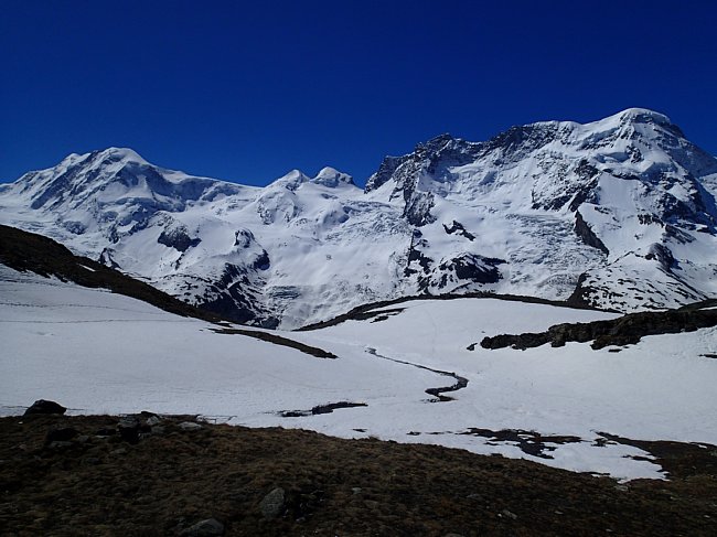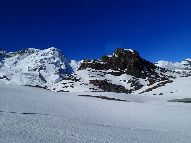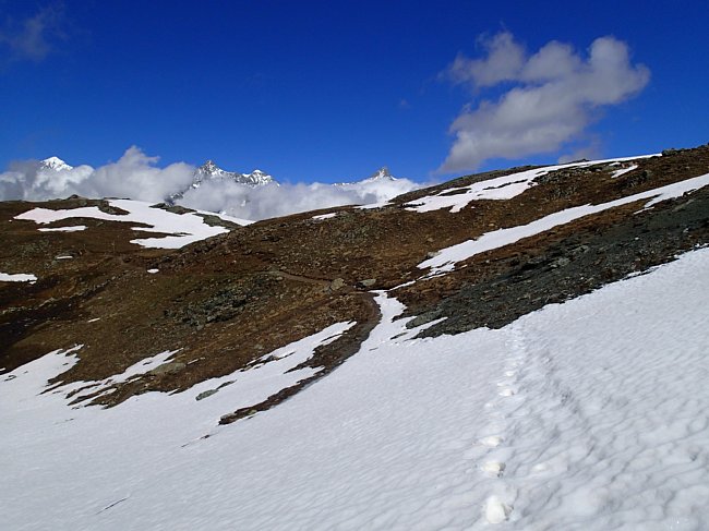 テッシュの村の奥にブライトホルンとクラインマッターホルン