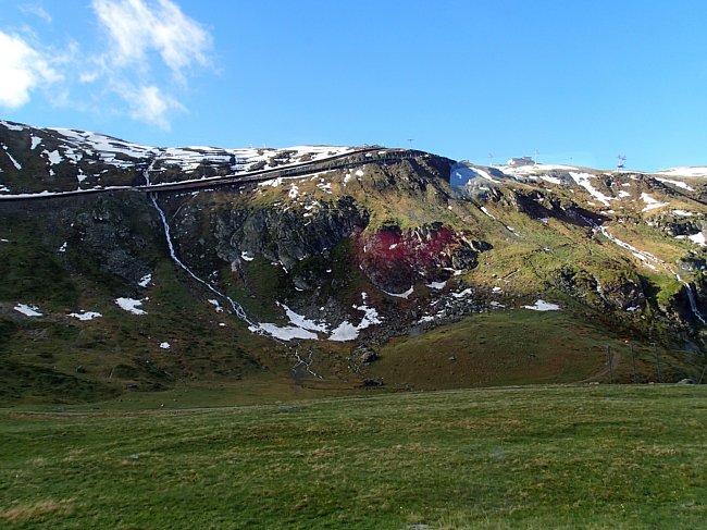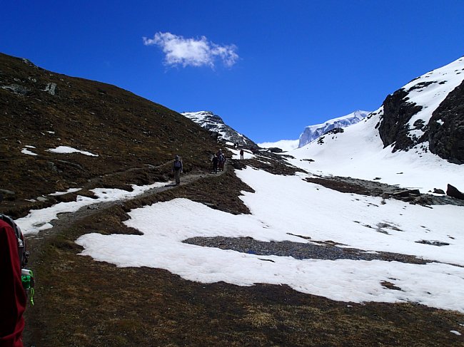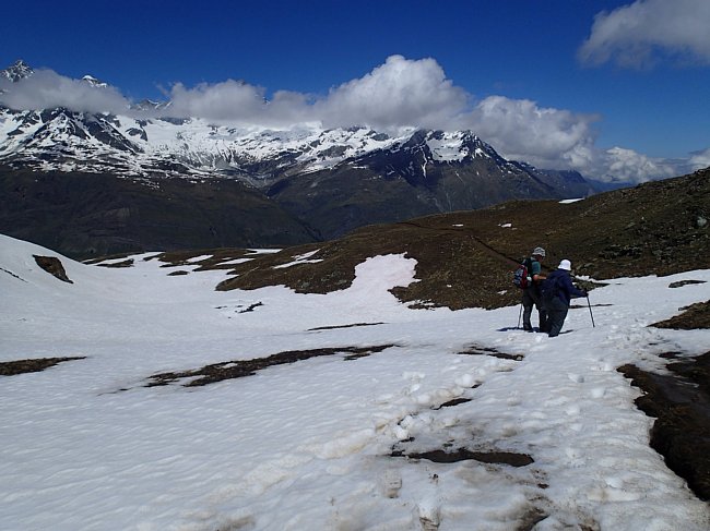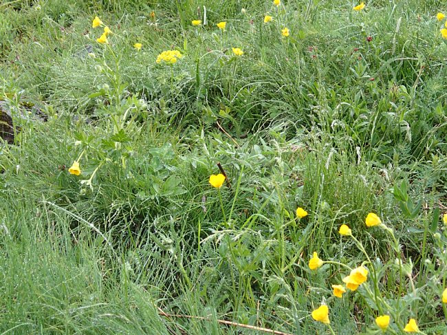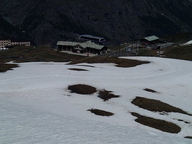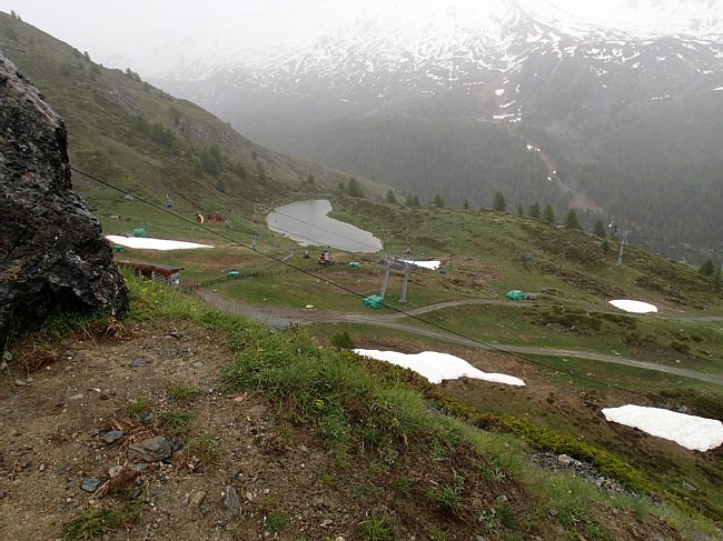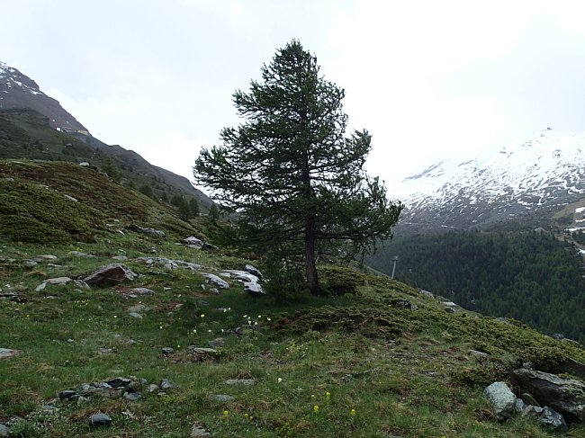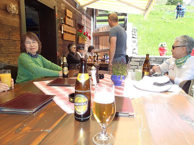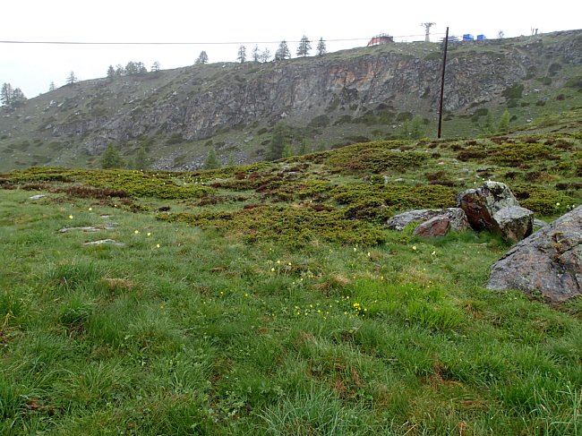 6月はまだ雪が多いのでシルトホルンへは上がらず、バスとロープウエーでスルワルトに上がり、ロープホルンヒュッテへフラワーハイキング。