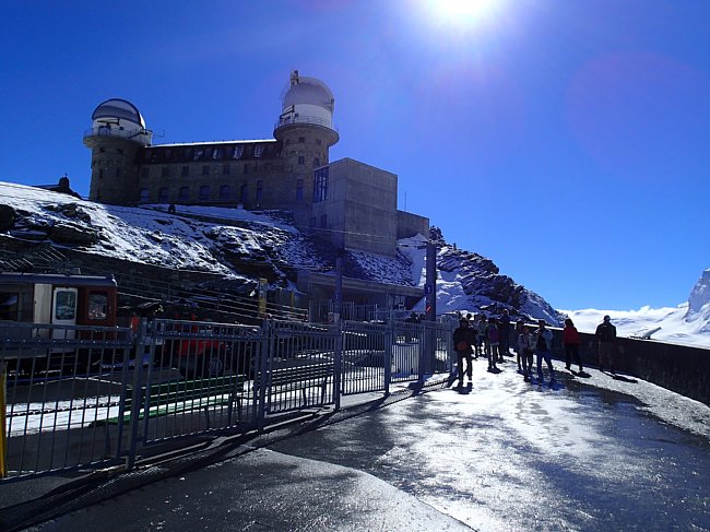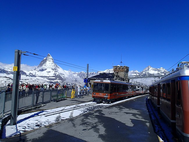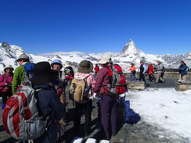 ホテル~ゴルナー鉄道駅=ゴルナーグラート駅~ゴルナーグラートホテル~展望台~ゴルナーグラートホテル~ゴルナーグラート駅=ローテンボーデン駅~リッフェルゼー~分岐・昼食~展望所~リッフェルベルク駅=リッフェルアルプ駅~リッフェルアルプ~リッフェルアルプ駅=ゴルナー鉄道駅~ツェルマットホテル・パルナス |