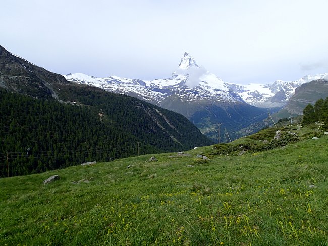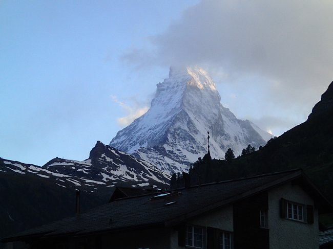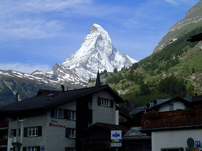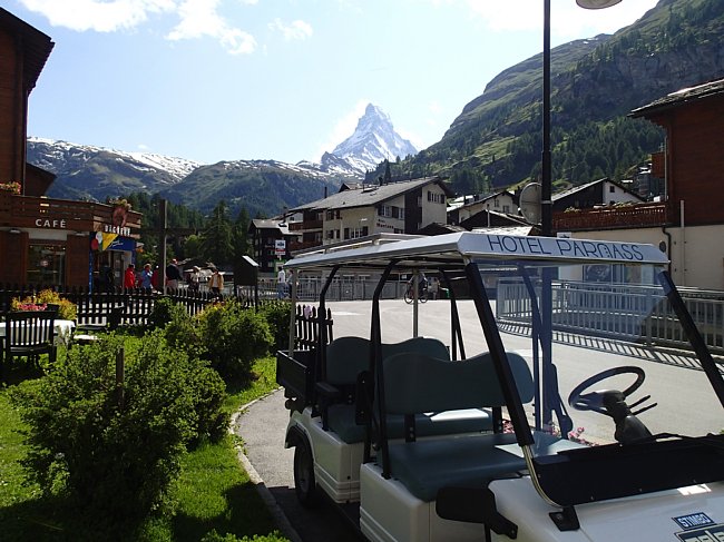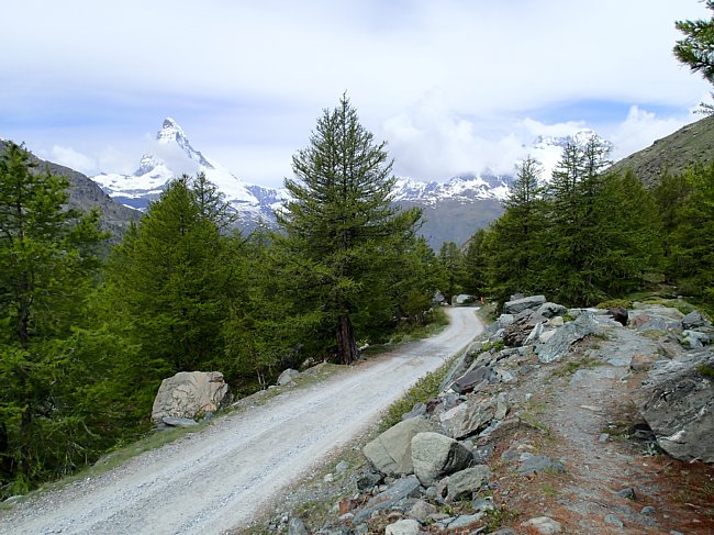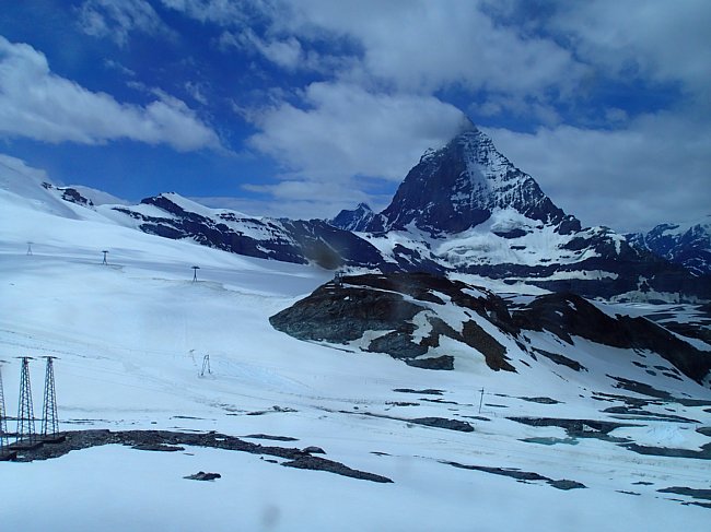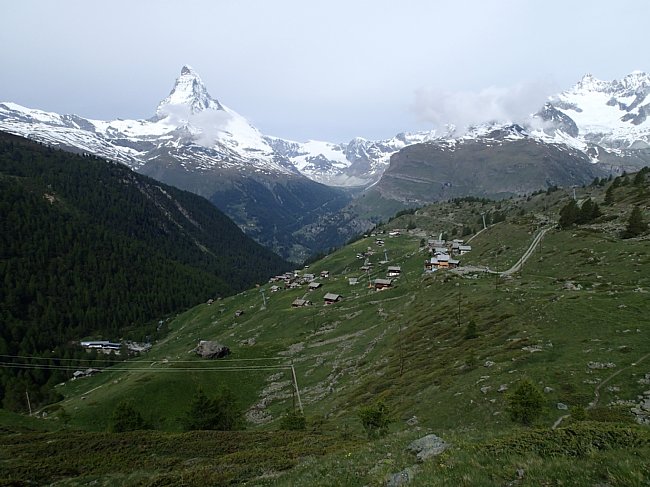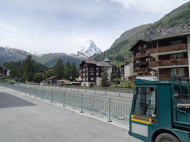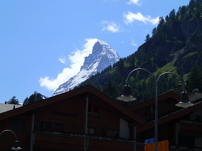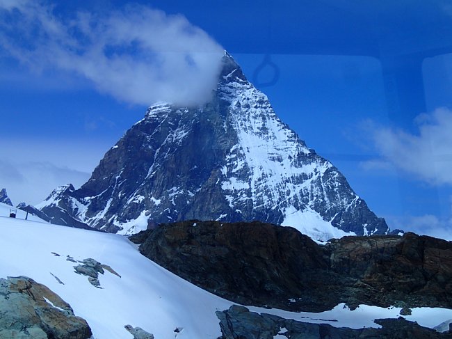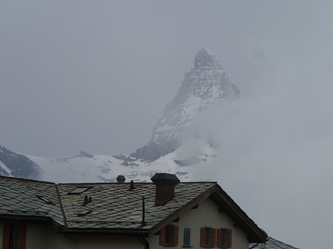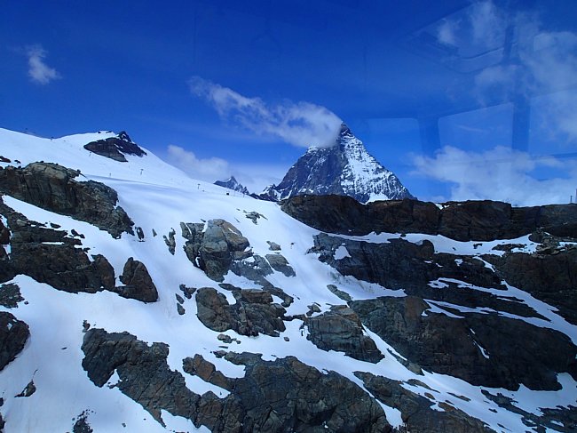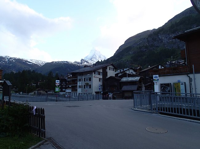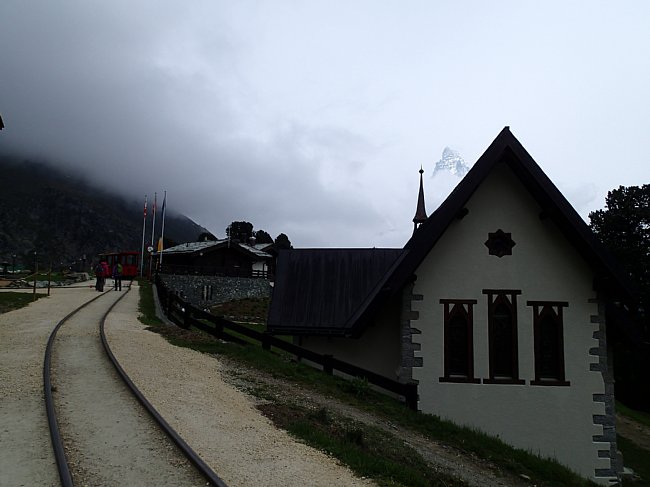 ツェルマット到着直前に一瞬見えるマッターホルン
