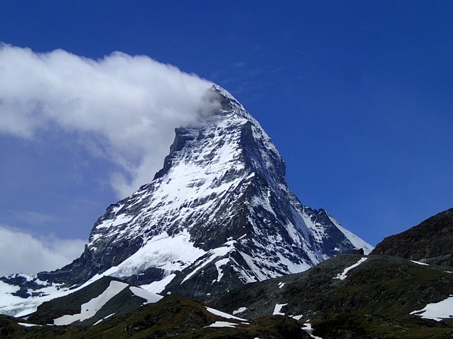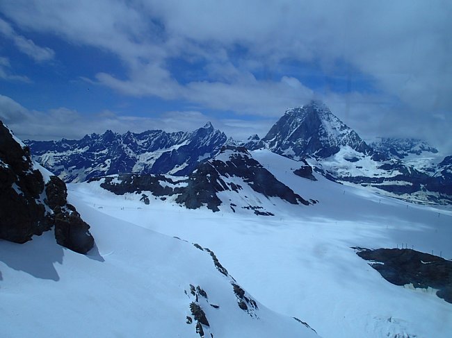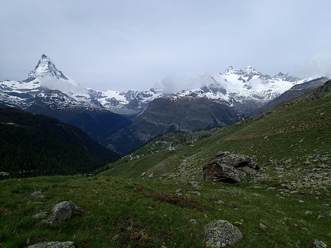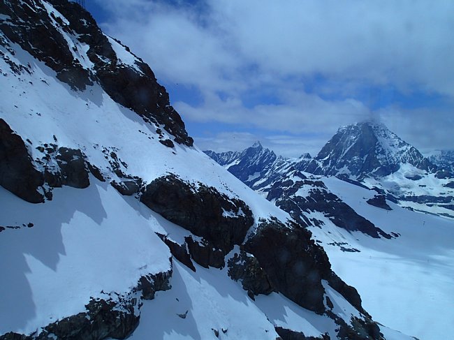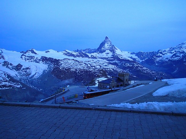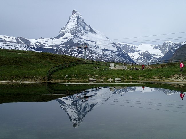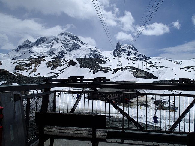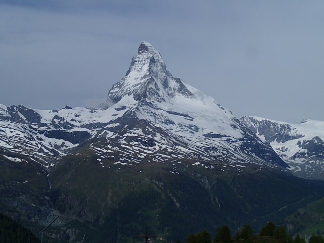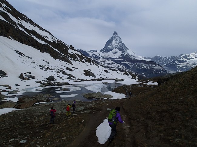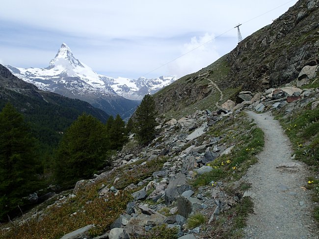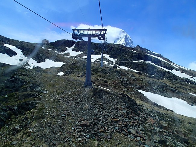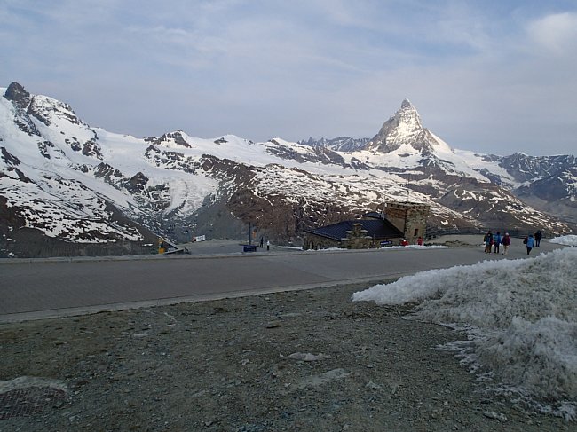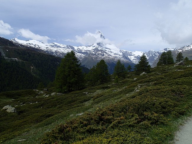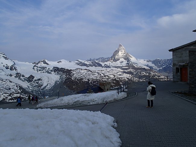 ツェルマット到着直前に一瞬見えるマッターホルン