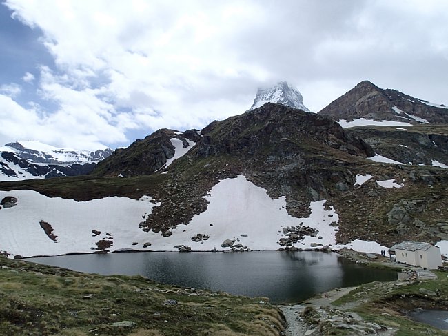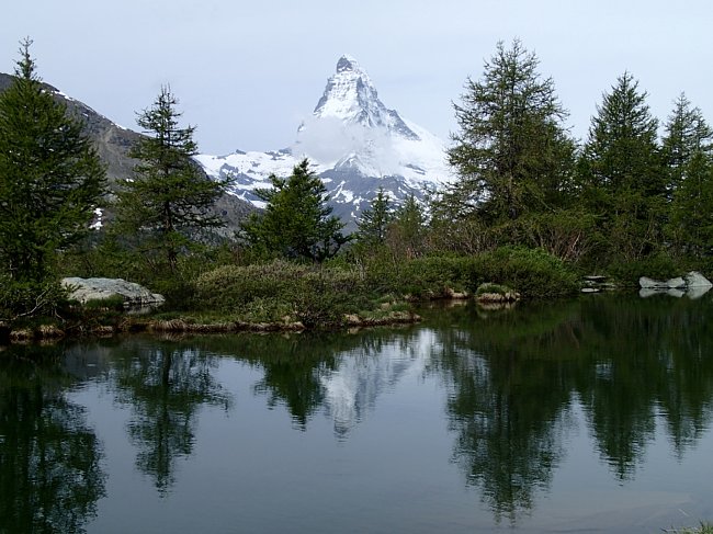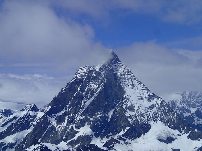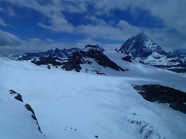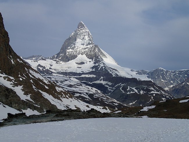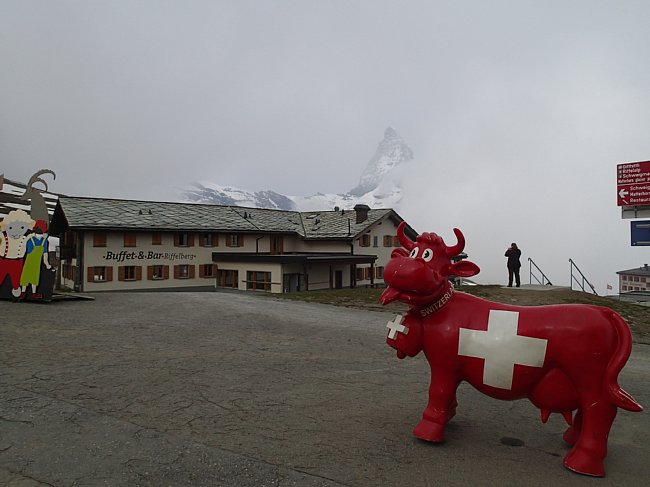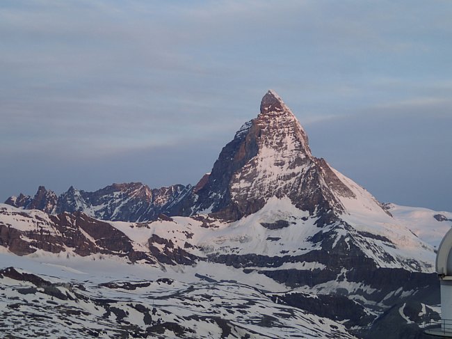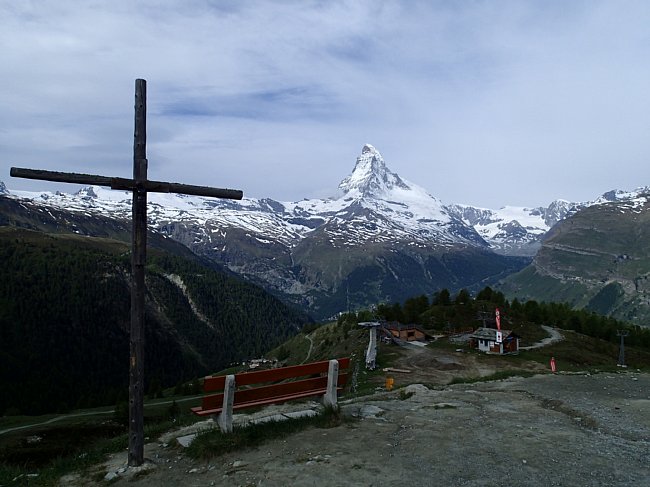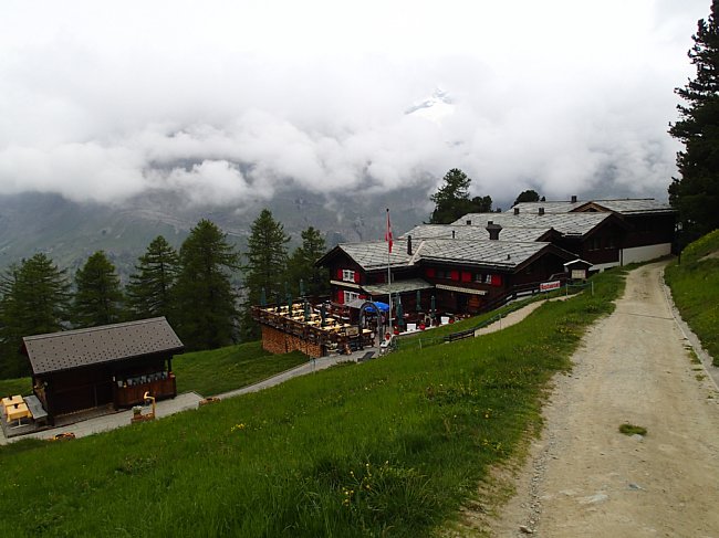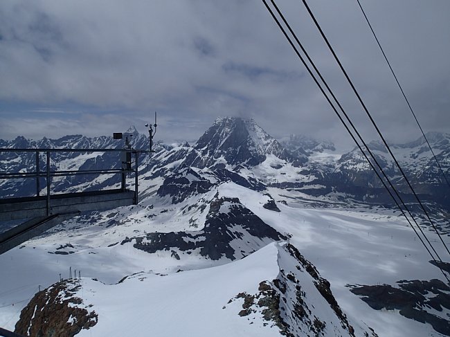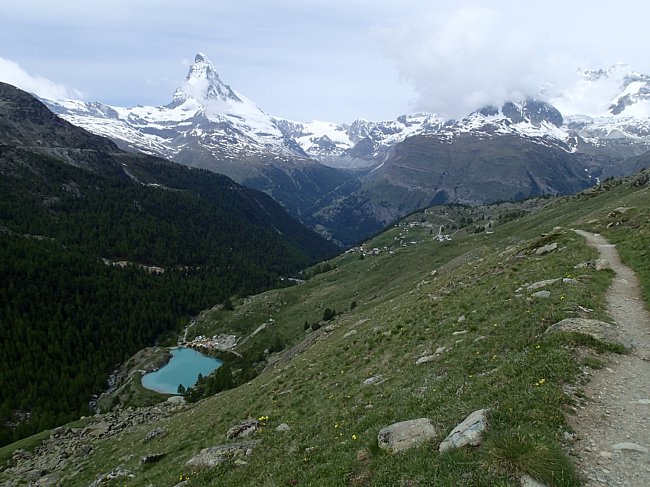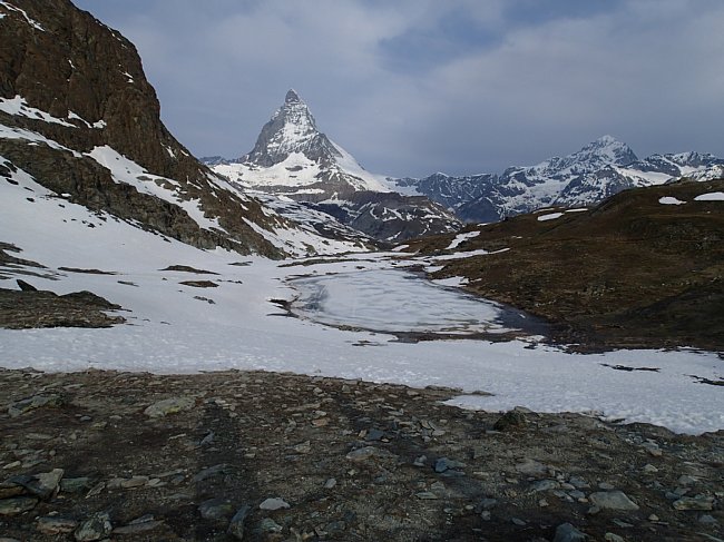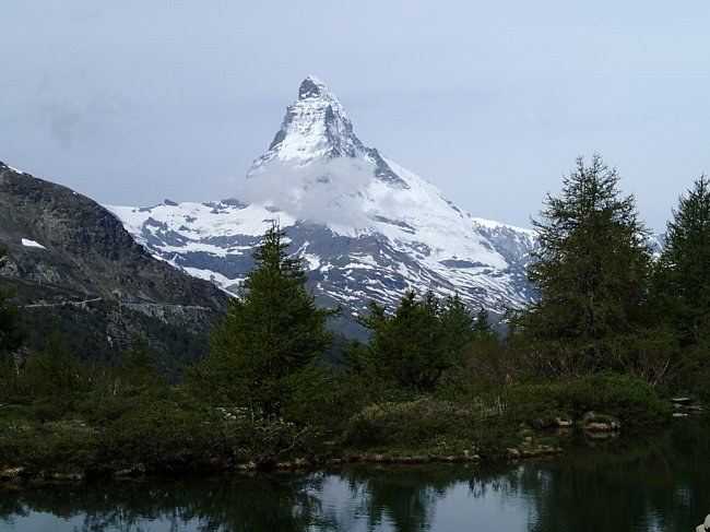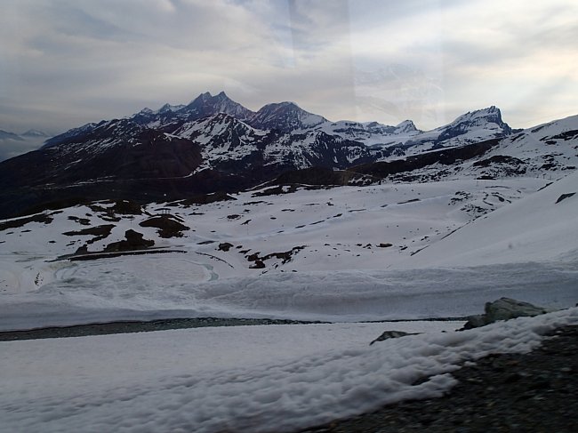 ツェルマット到着直前に一瞬見えるマッターホルン