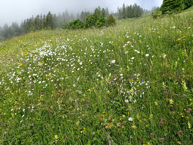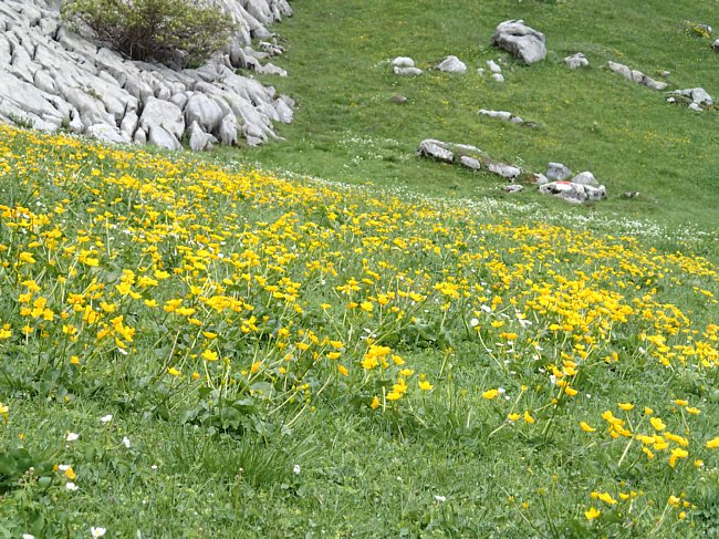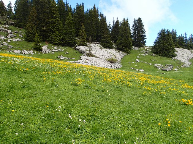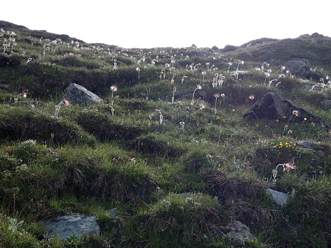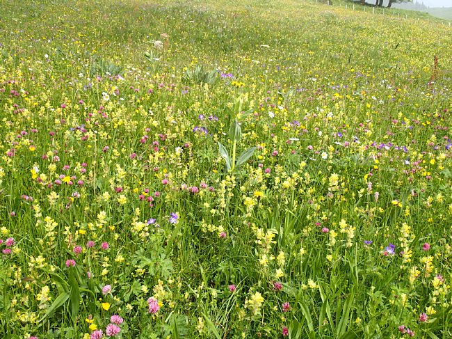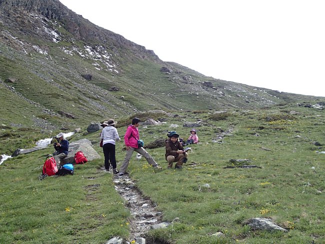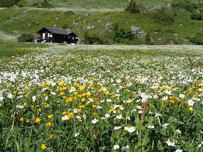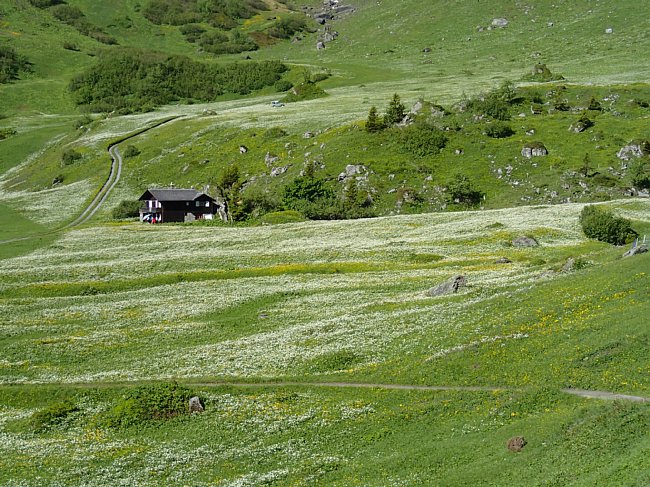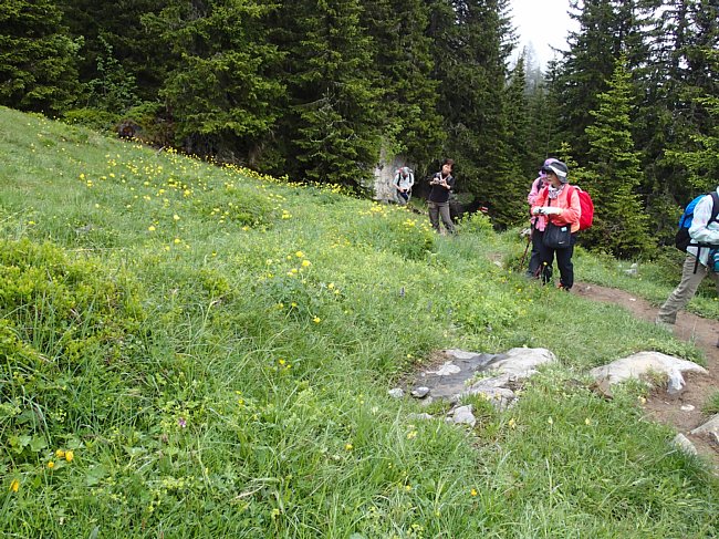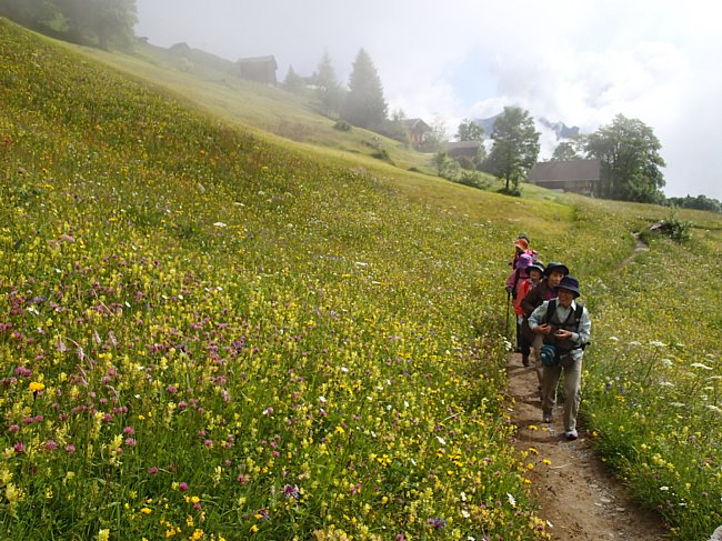 先週に続き6月のフラワーハイキングだ。6月下旬は高山の雪解けの時期なので一週間の違いでお花畑の様子が変わる。放牧される牛が上がってくると牧草地のお花畑は牛に荒らされてしまうので、牛との競争になる。