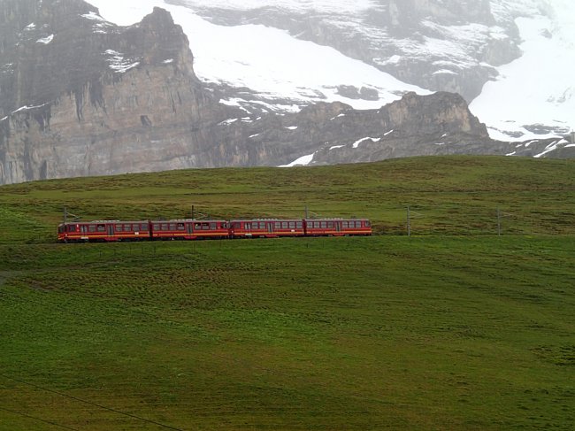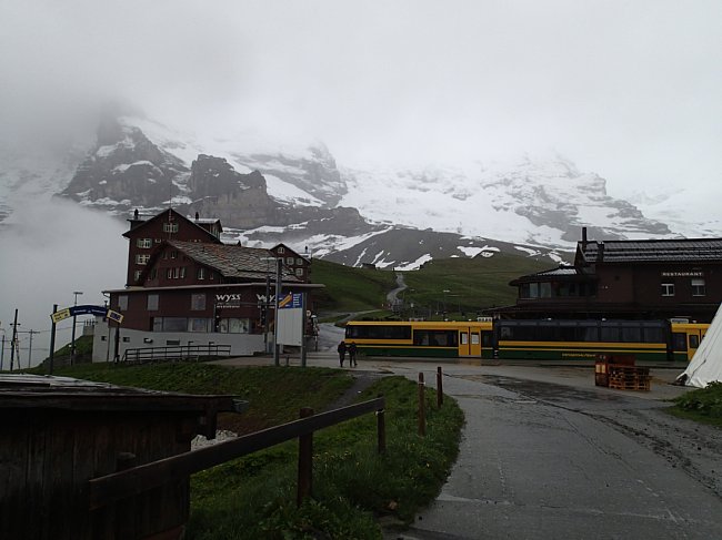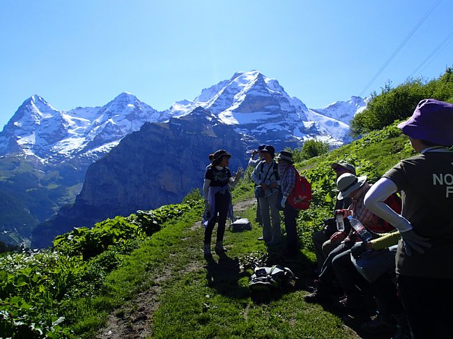 ホテル~ツェルマット駅=グリンデルワルト駅=クライネシャイデック駅~レストラン・アイガーノルトバント~クライネシャイデック駅~ヴェンゲンアルプ駅=ラウターブルンネン駅=ミューレン駅~ミューレンホテル・アイガー |