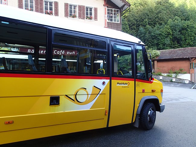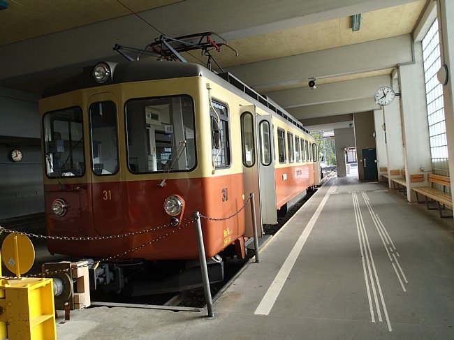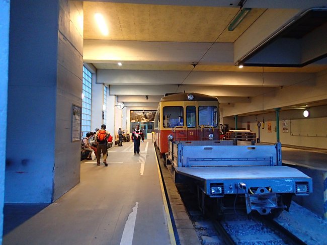 ミューレン駅からグルッチュアルプに向かう一両編成の電車
