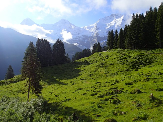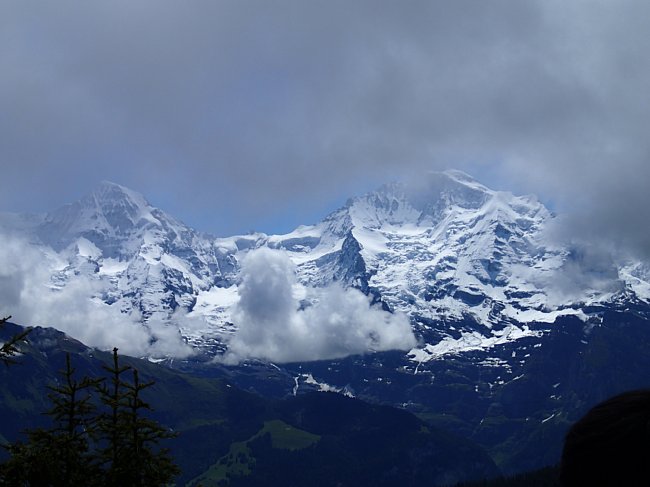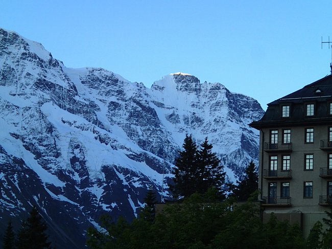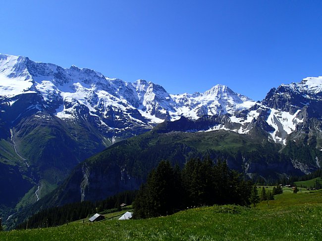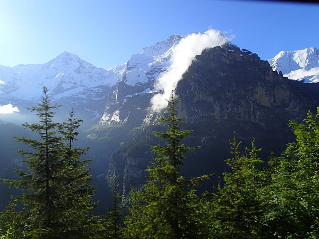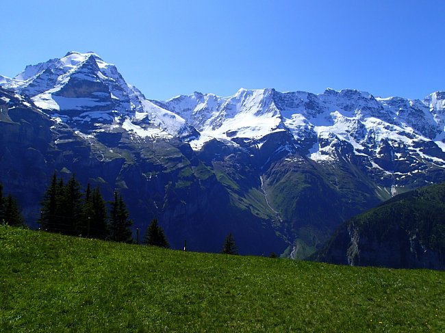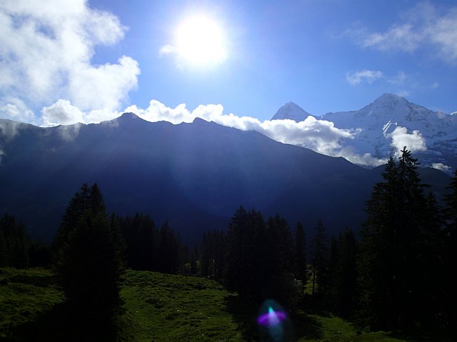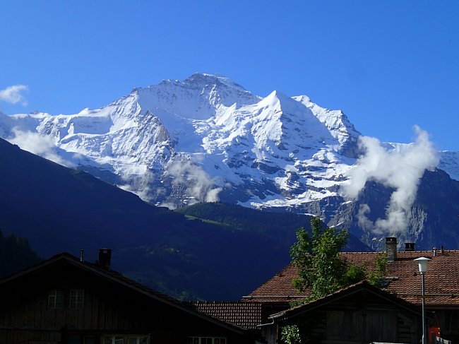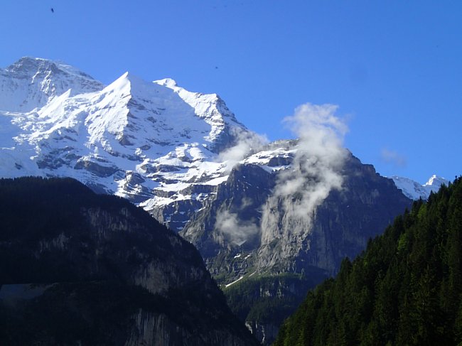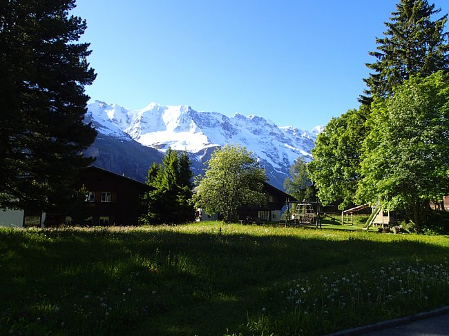 正面左にラウターブルンネン・ブライトホルン(Breithorn 3,785m)