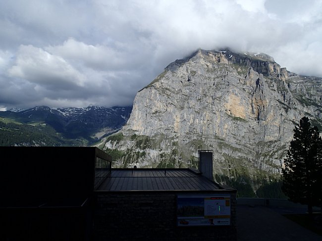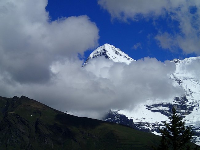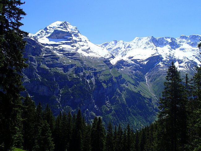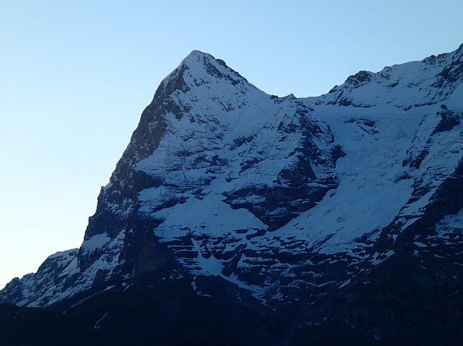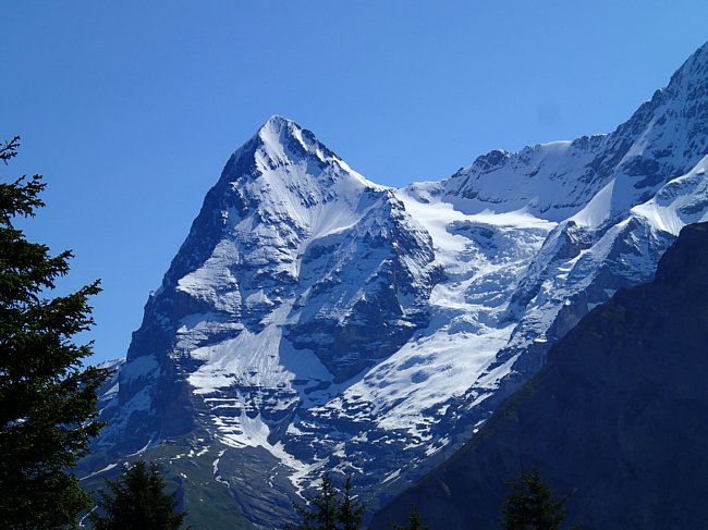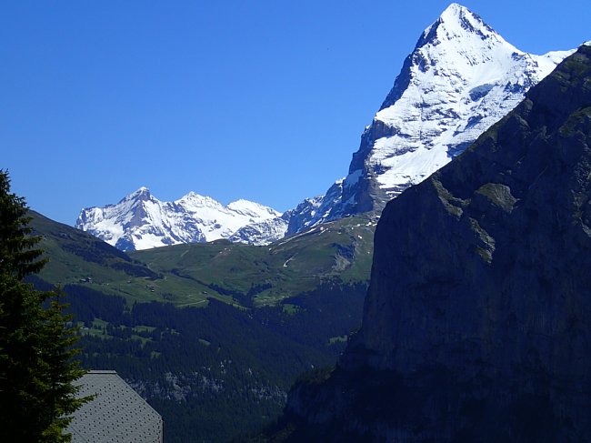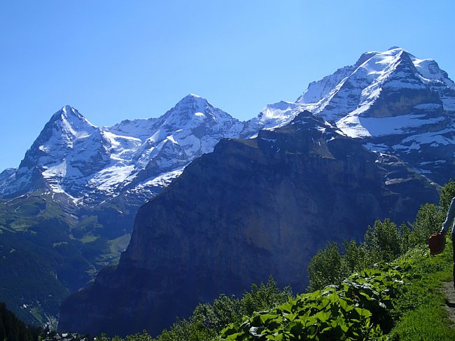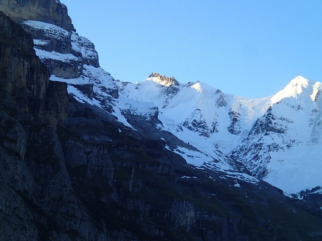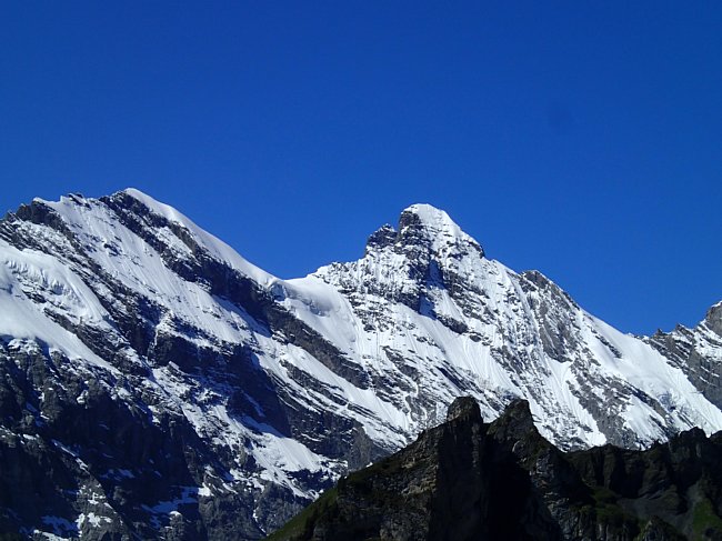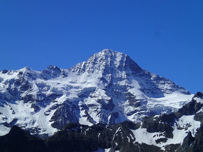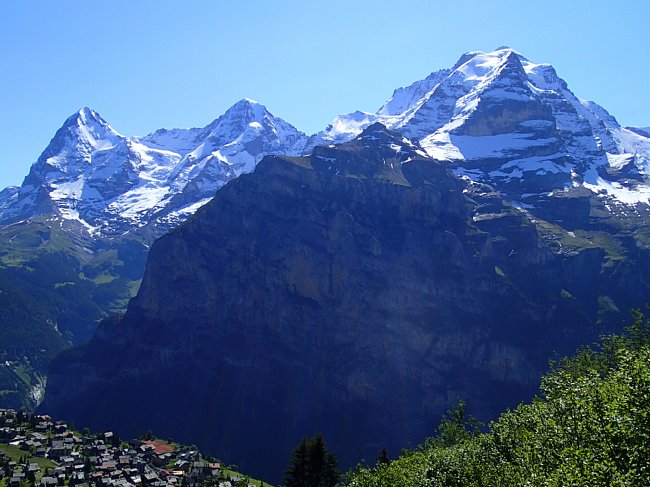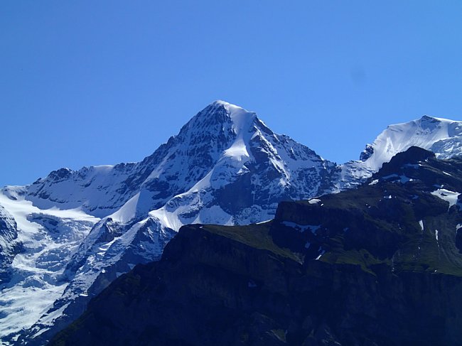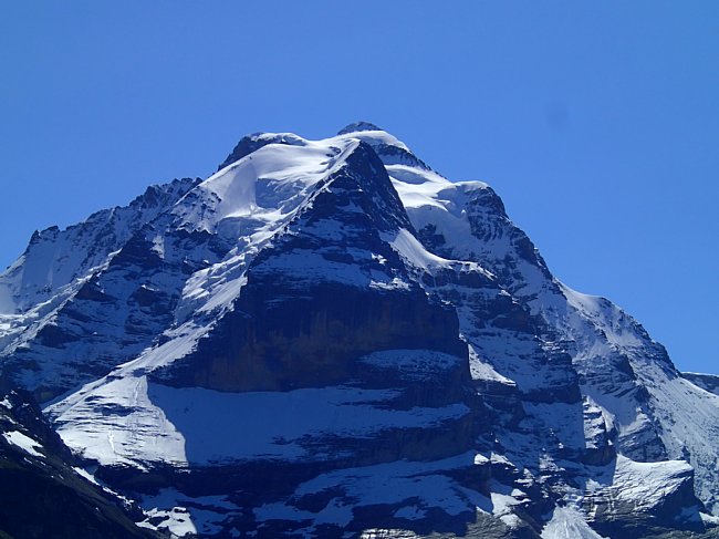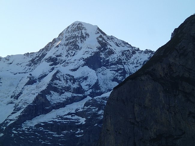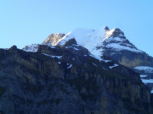 ベルナーオーバーラント三山とシュワルツメンヒ(Schwarzmonch 2,648m)の壁