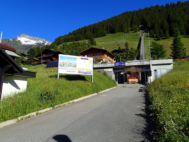 ホテル~アルメントフーベル下駅=アルメントフーベル上駅~シルトアルプチーズ小屋~ミューレン~ミューレンホテル・アイガー |