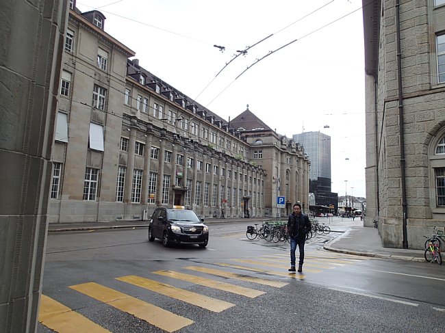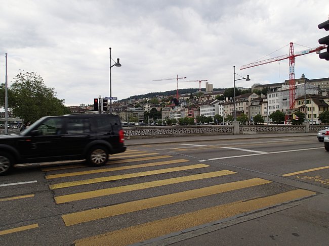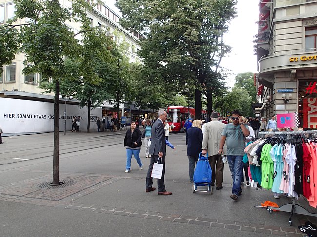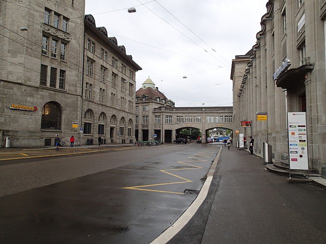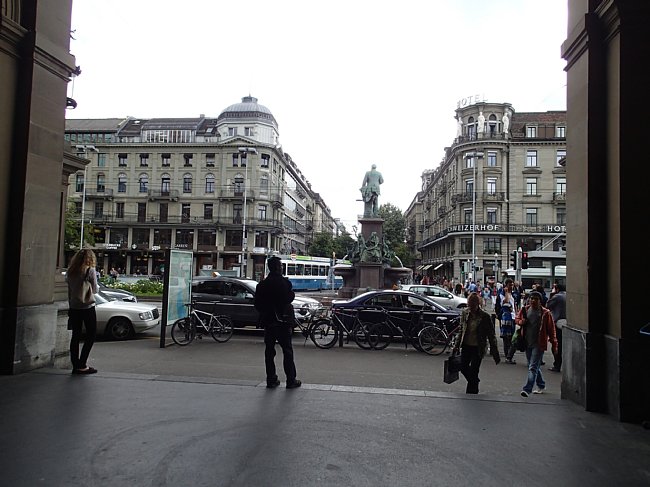 鉄道王のエッシャー像からチューリッヒ市街バンホフ通りへ