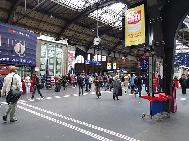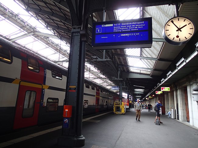 ジュネーブ空港行きの列車でチューリッヒ中央駅へ向かう