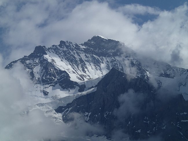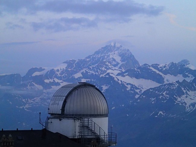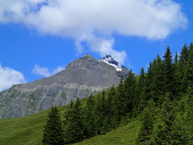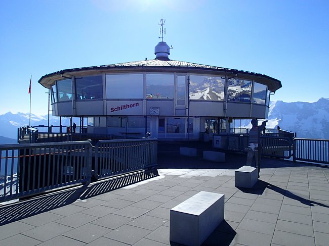 頂上に展望台が見えるシルトホルン(Schilthorn 2,970m)