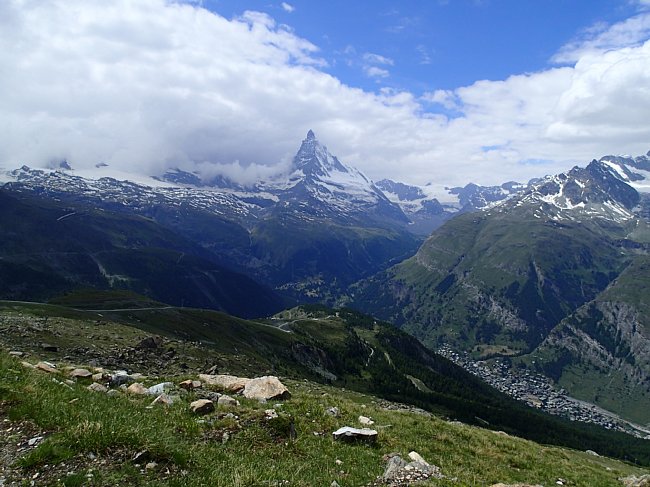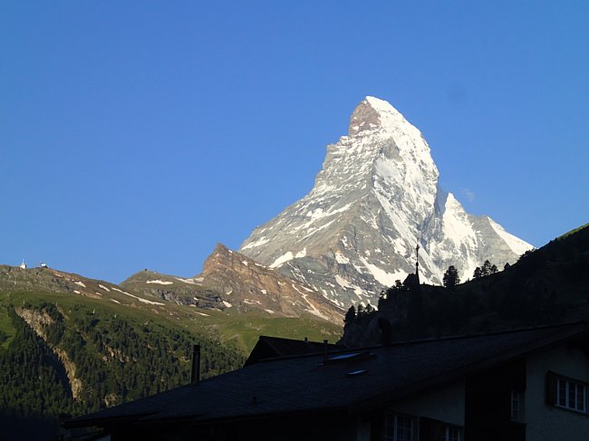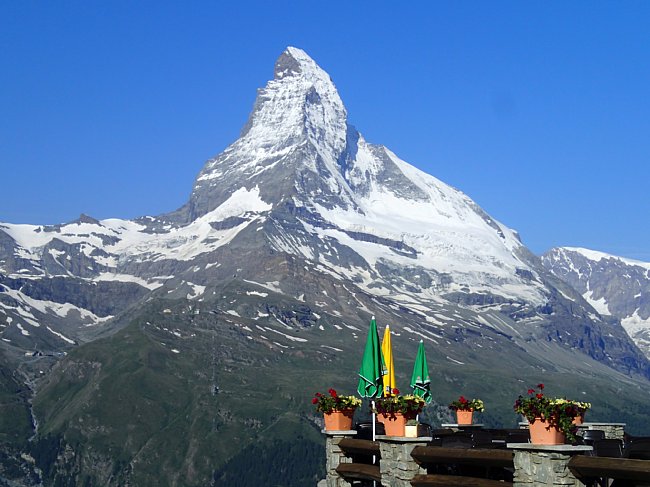 午前中はベルンの市内観光。10番のトラムでバラ園へ行き、クマ園、時計塔、大聖堂、朝市と歩いてホテルに戻る。昼食を済ませて、午後は鉄道でツェルマットへ移動し、常宿のホテルパルナスに宿泊。