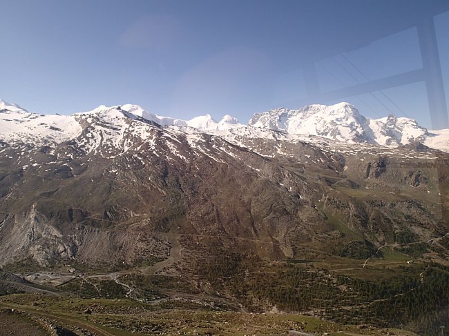 | 昼食後、ベルン駅から鉄道でツェルマット駅へ。フィスプ駅で乗り換え、マッターホルンゴッタルド鉄道でツェルマットへ。 |