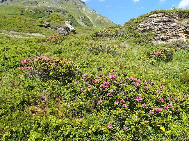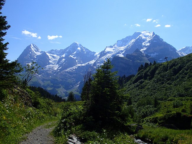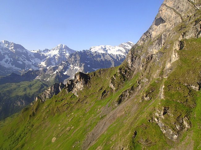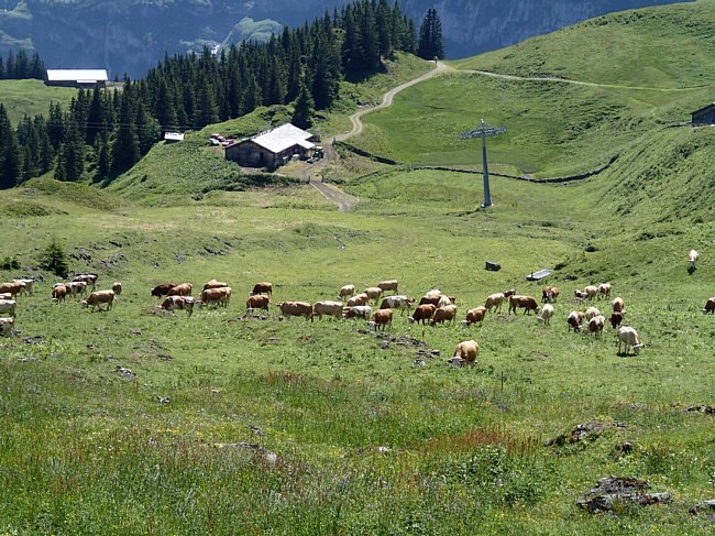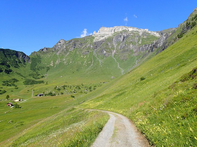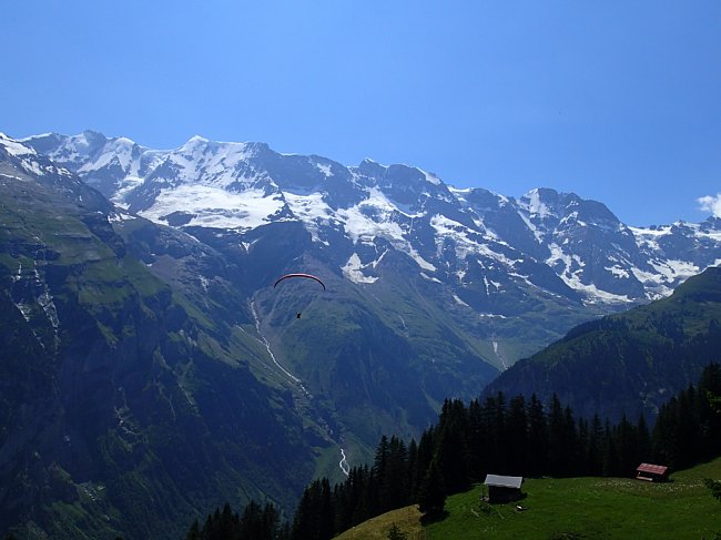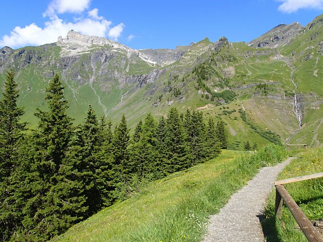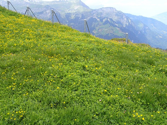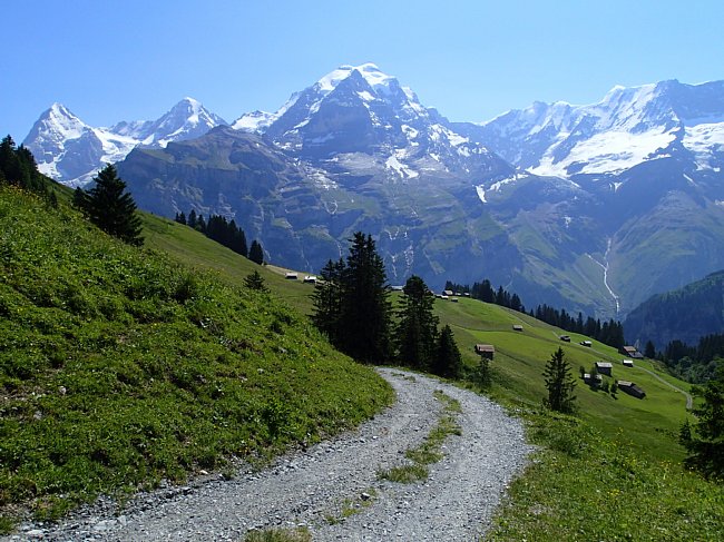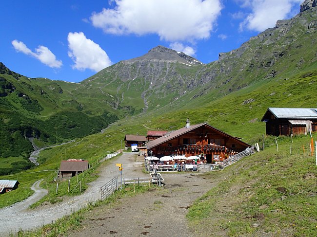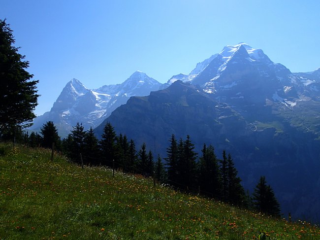 アルメントフーベルから花の谷を横切ってノースフェーストレールを歩き、シルトアルプのチーズ小屋を経由してミューレンへフラワーハイキング。午後3時にスーツケースをミューレン駅からチューリッヒ空港へ送るため午前中半日のハイキング。