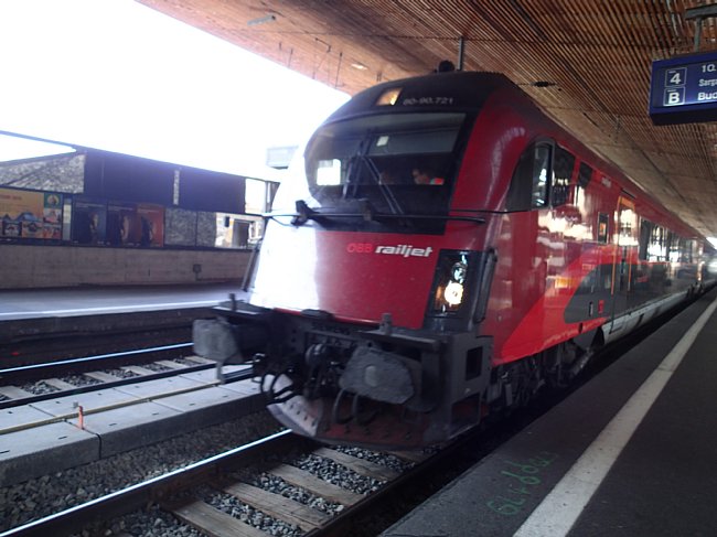 8月のチロルツアーで乗るオーストリア鉄道のレールジェット