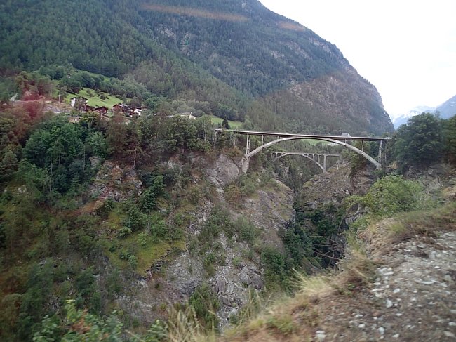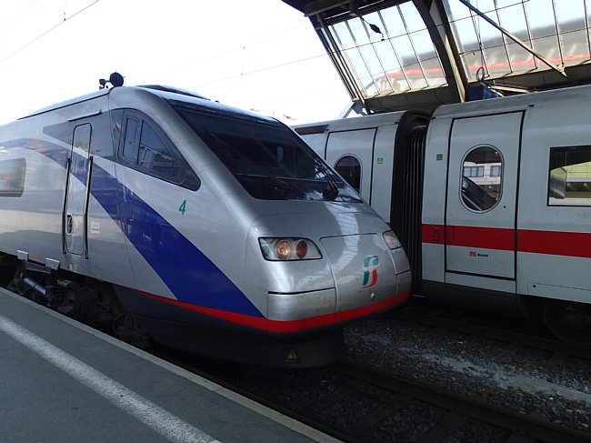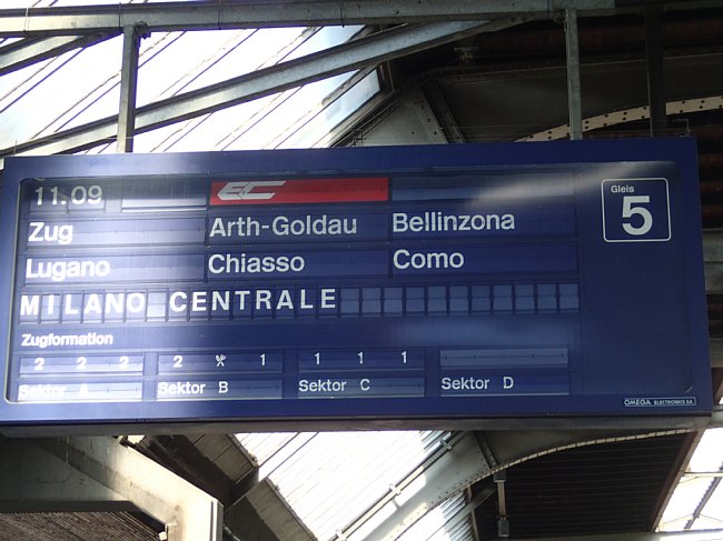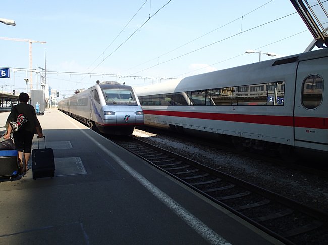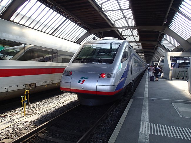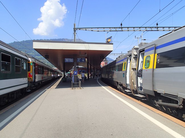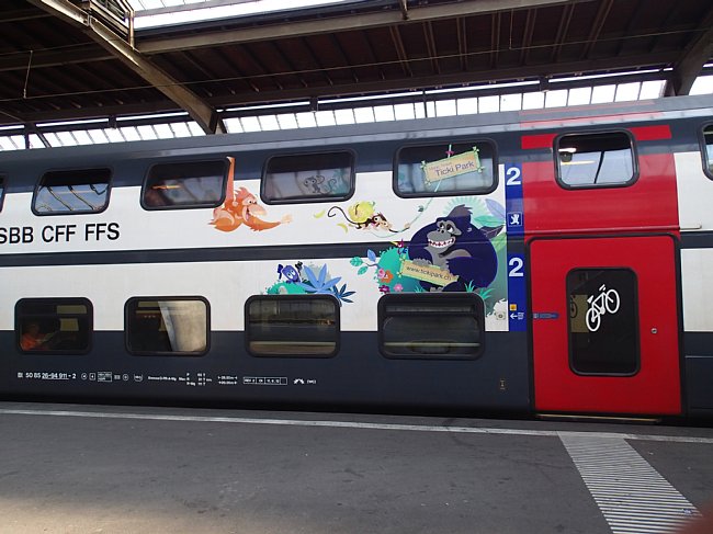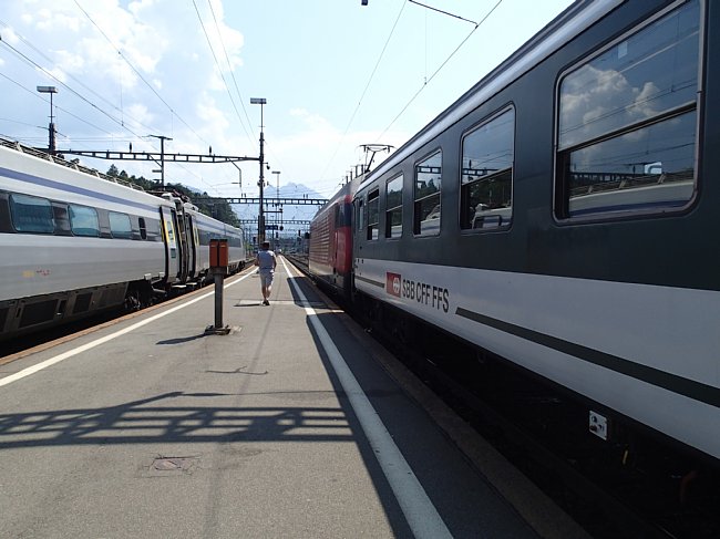 |  チューリッヒ空港駅からチューリッヒ中央駅、アルトゴルダウ駅、ゲッシュネン駅と乗り継いでアンデールマツト駅へ向かった。チューリッヒ中央駅にはヨーロッパ各国から国際列車が集まるので色々な列車が見られる。 |