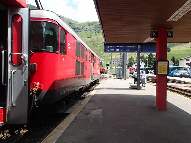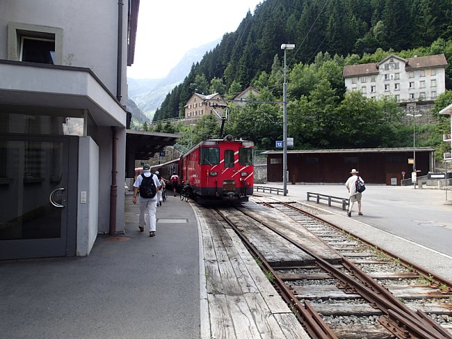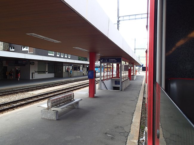ゲッシュネン駅でアンデールマット行きのマッターホルン・ゴッタルド鉄道に乗り換え