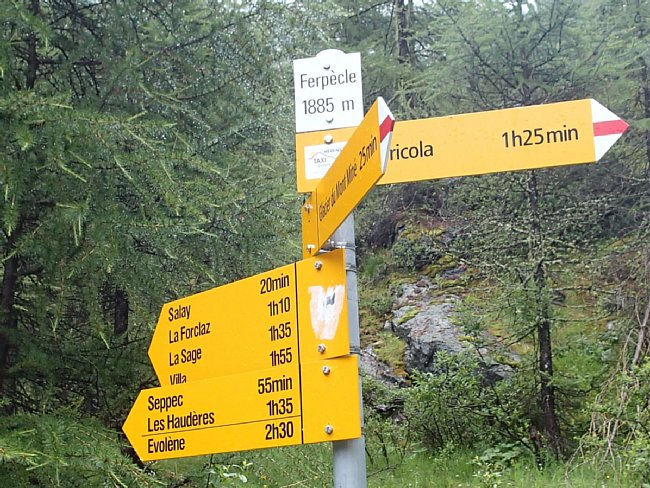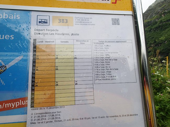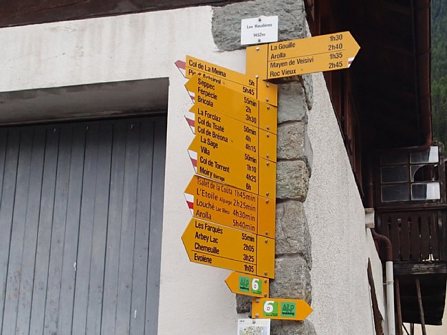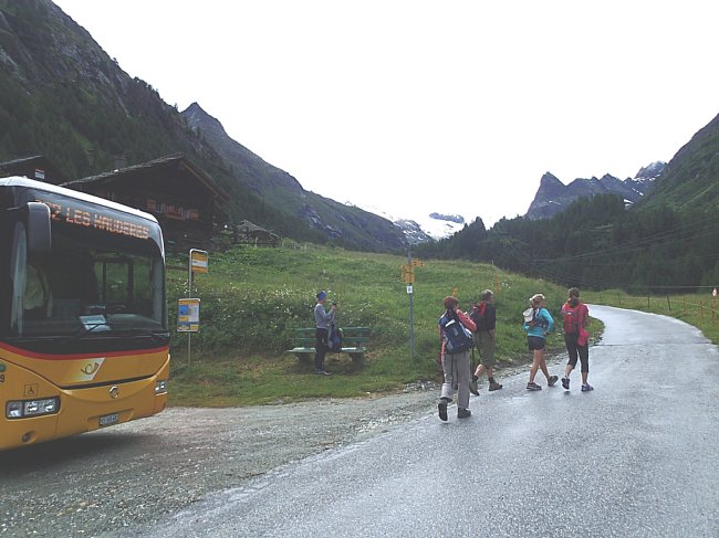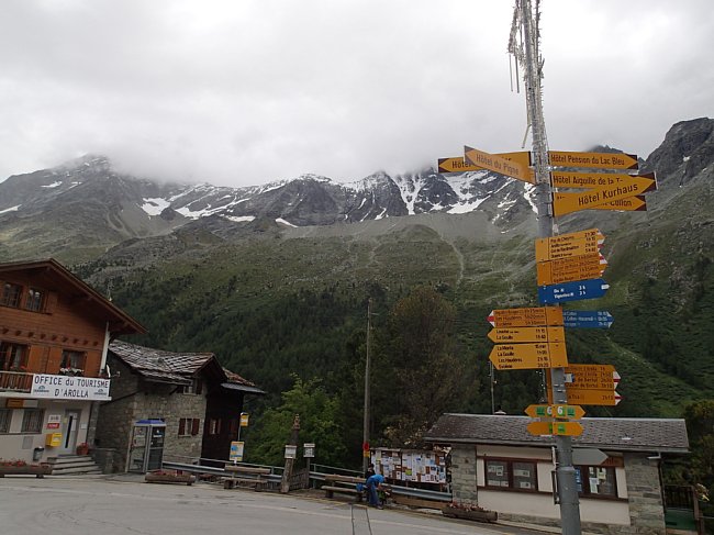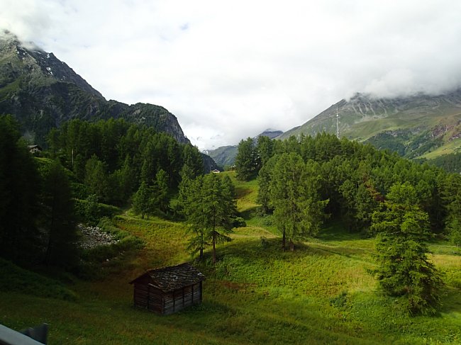 | ヒュッテツアーを見送って、3日間のイタリア側のツールドマッターホルンの調査を計画してアローラに行った。シオンまで列車を乗り継ぎ、シオンからバスで上がる。 |