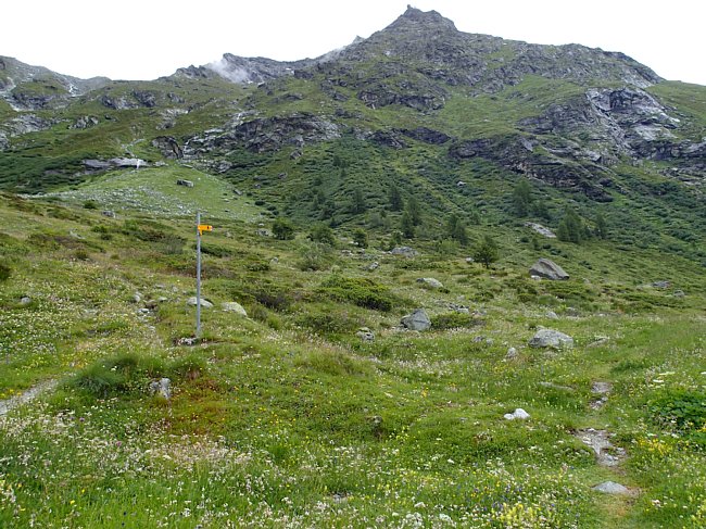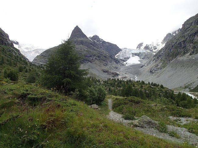 ブリコラの奥のダン・ブランシュ(Dent Blanche 4,357m)は雲の中
