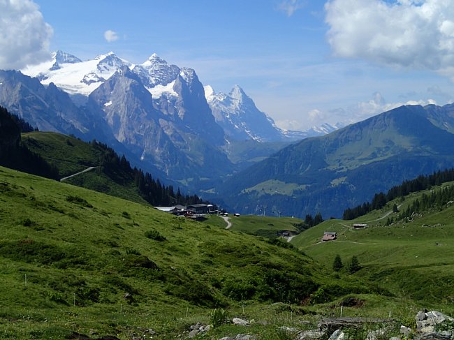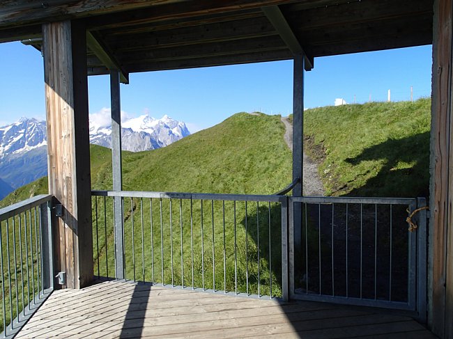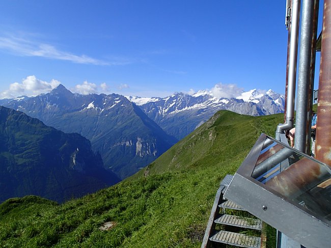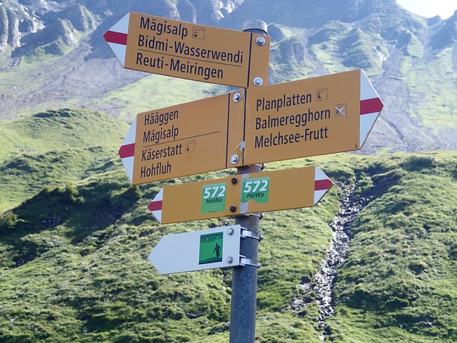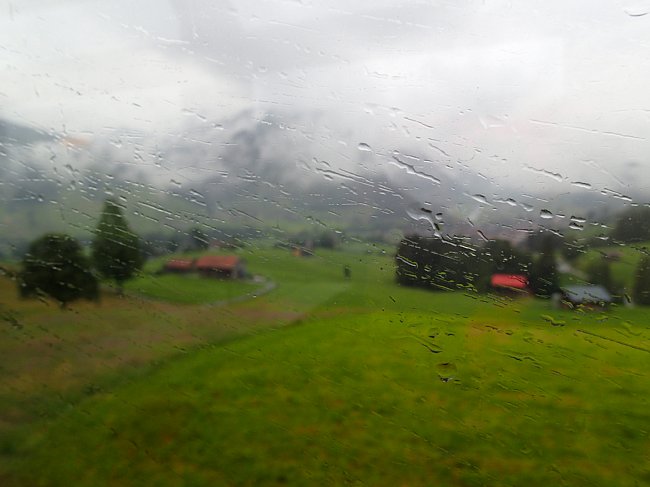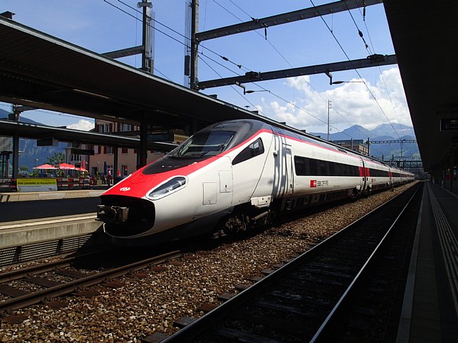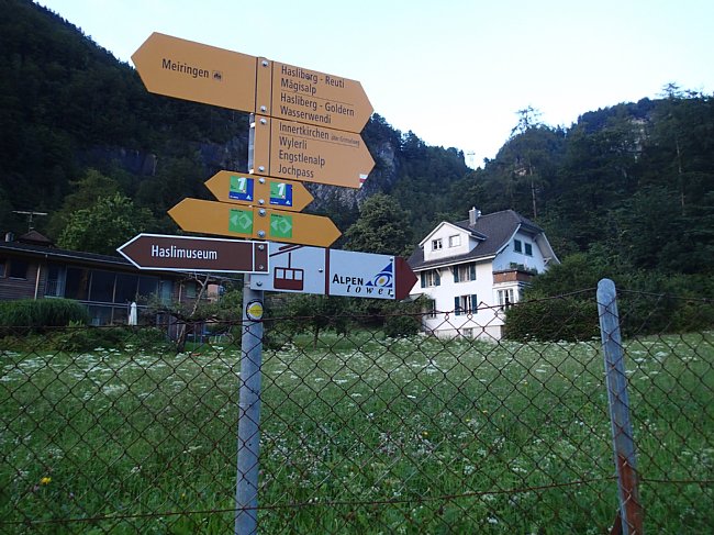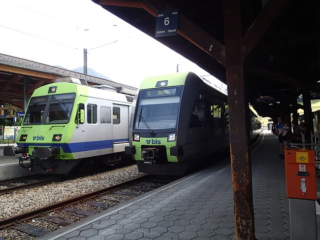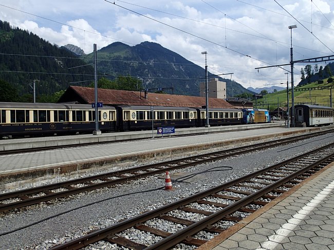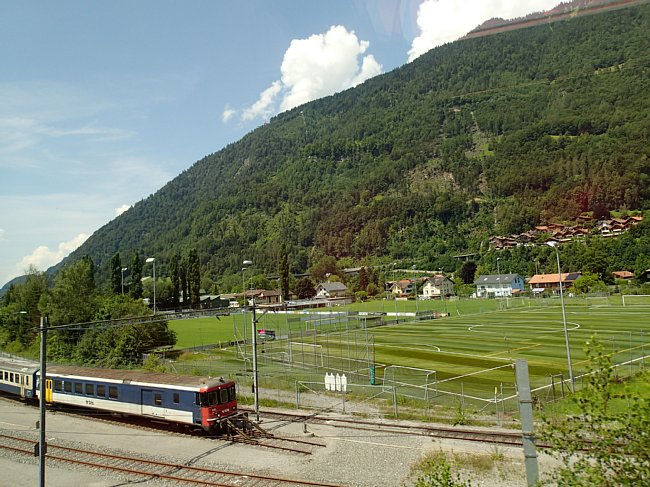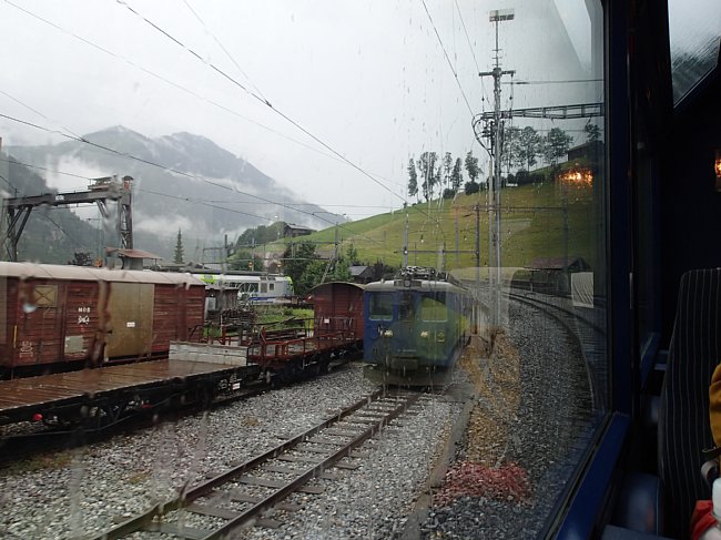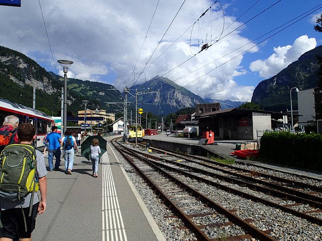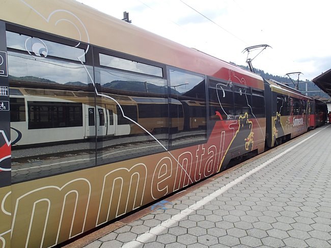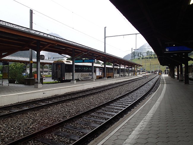 | レゾデールからバスでシオン駅に下り、鉄道でフィスプ、シュビーツ、インターラーケンオストと乗り換えて、マイリンゲンへ向かう。 |