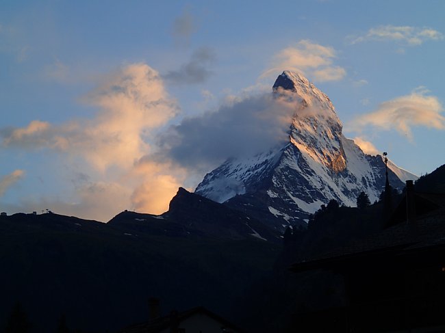 夜になって姿を現したマッターホルン、ホテル・パルナスから