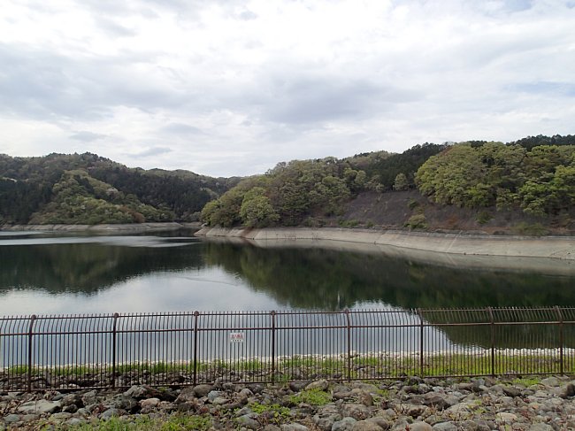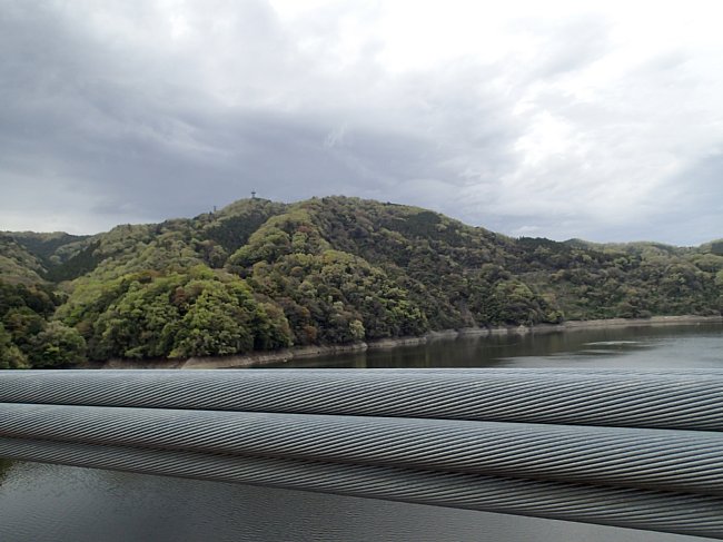 本沢ダムから見上げる城山湖展望台