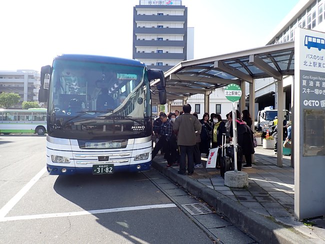 北上駅からバスで出発