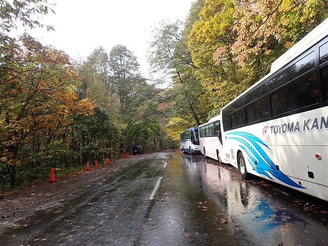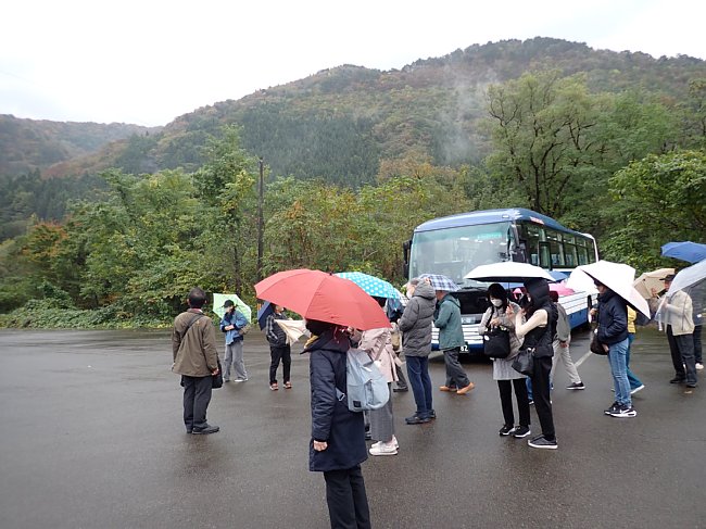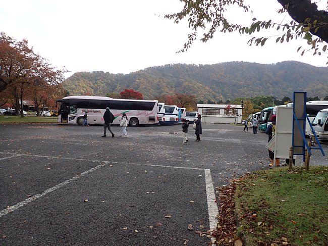 バスで抱返り渓谷駐車場へ
