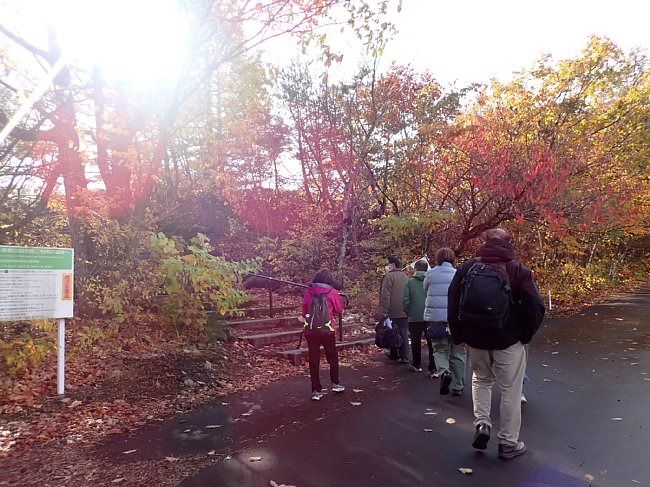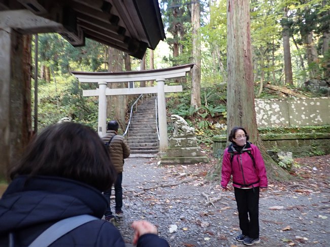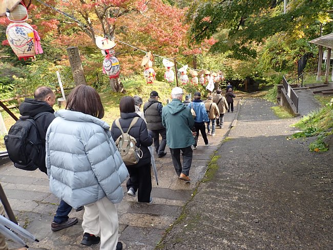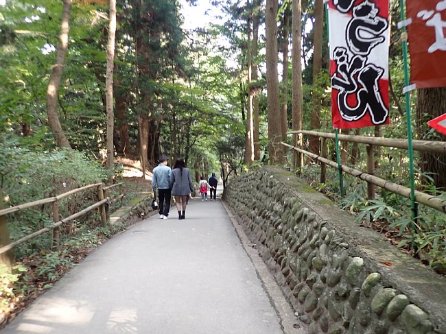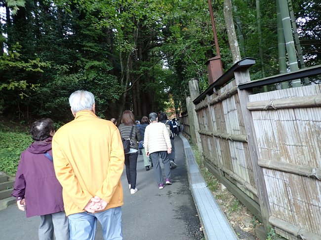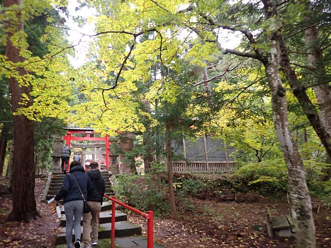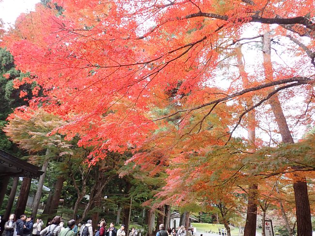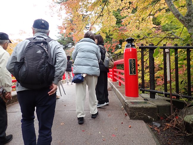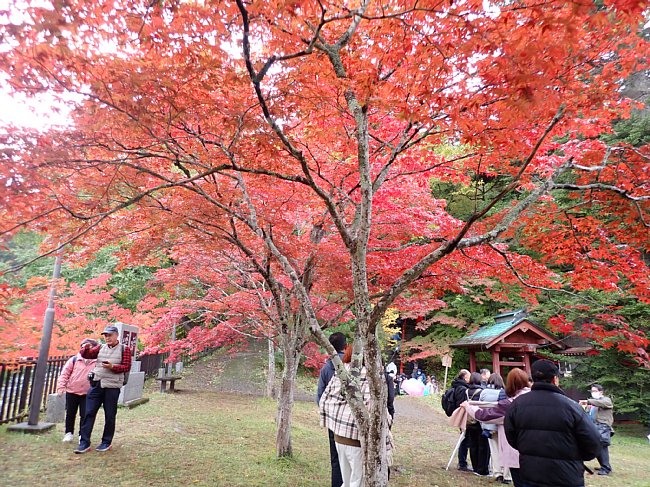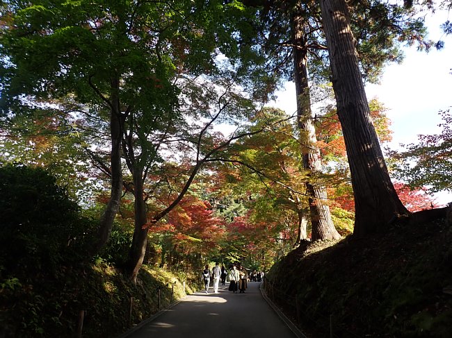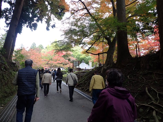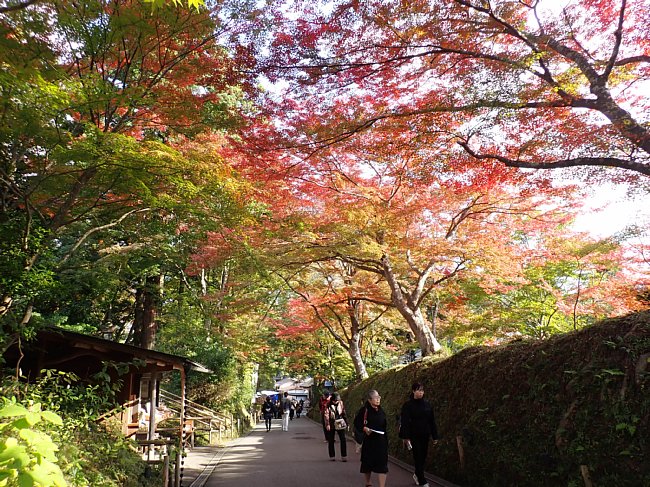 紅葉の参道を月見坂へ
