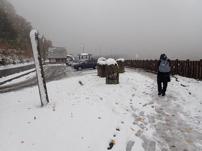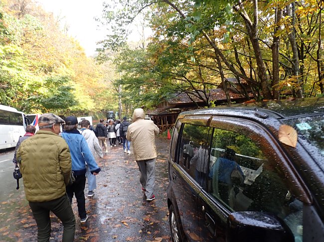 抱返り渓谷入口で風雨が強まりハイキングは中止に