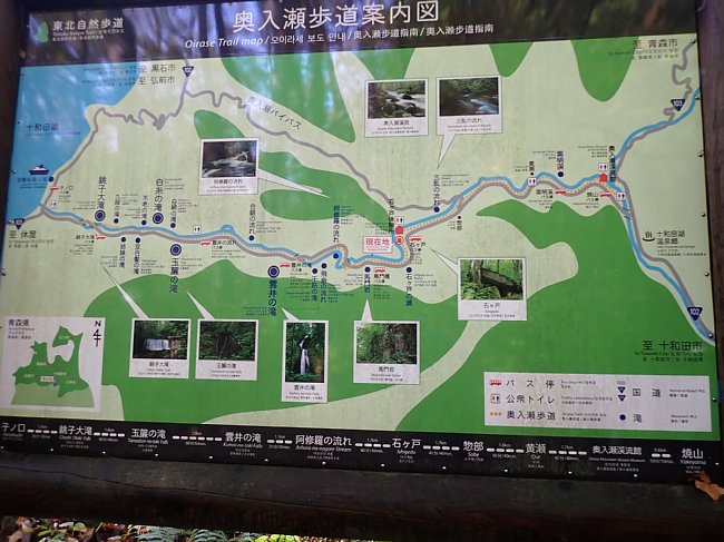 安比高原温泉=中野神社駐車場~中野神社~中野神社駐車場=城ヶ倉大橋=八甲田山麓駅=石ヶ戸休憩所~石ヶ戸の瀬~石ヶ戸休憩所=子ノ口=休屋駐車場~乙女の像~十和田神社~休屋駐車場=発荷峠=安比高原温泉 |