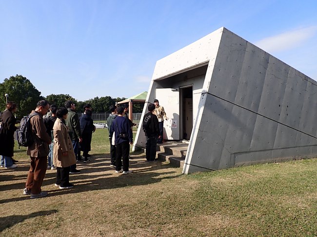 防災地下神殿(巨大な調圧水槽)の上にある多目的広場の左に調圧水槽入口