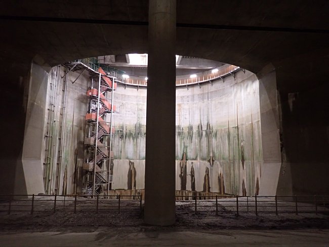 広大な調圧水槽(長さ177m高さ18m幅78m)