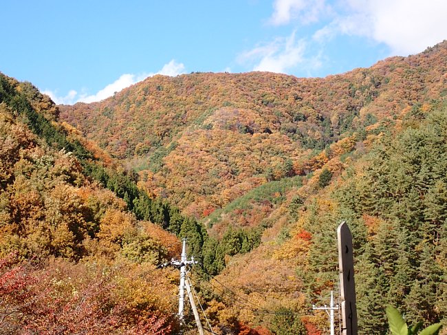 紅葉の山を望む