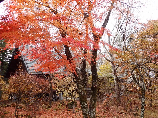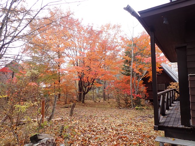 原村の庭の紅葉も素晴らしく、杖突峠手前のカフェ「風の詩」からの八ヶ岳の展望も素晴らしかった。