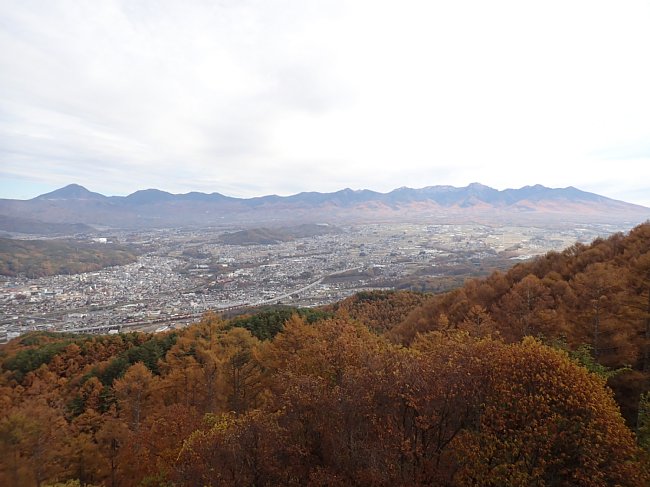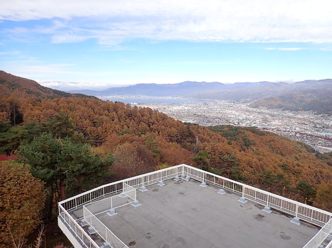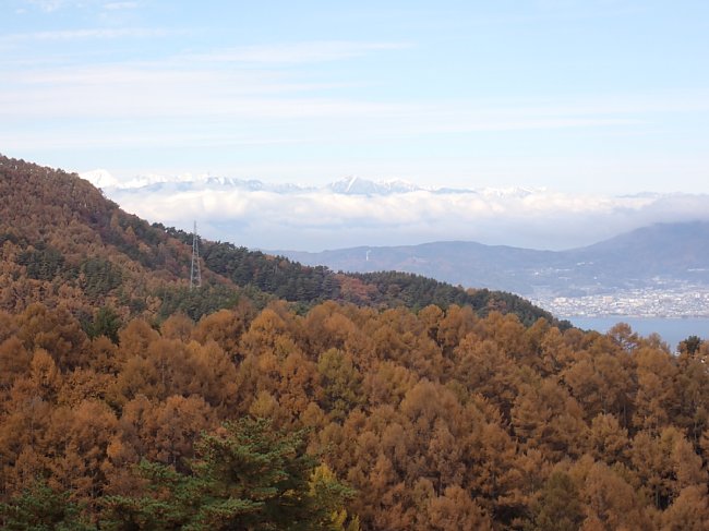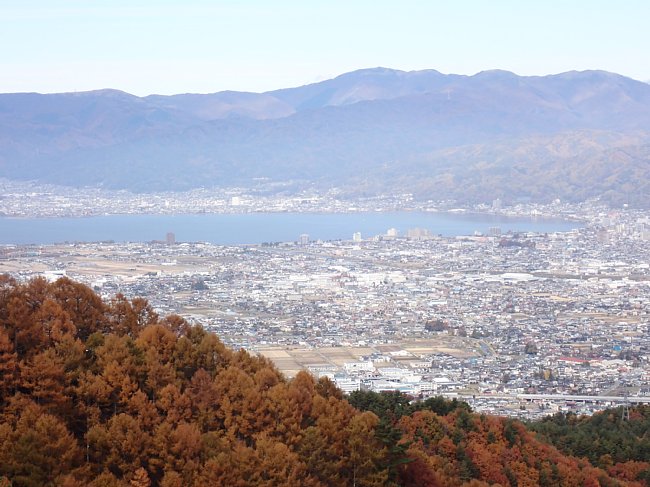 諏訪湖方面の展望、諏訪湖の左手奥に北アルプス