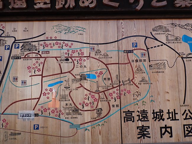 原村=杖突峠「風の詩」=高遠城址公園北口駐車場~本丸~高遠城址公園北口駐車場=そば処「紅さくら」=原村 |
