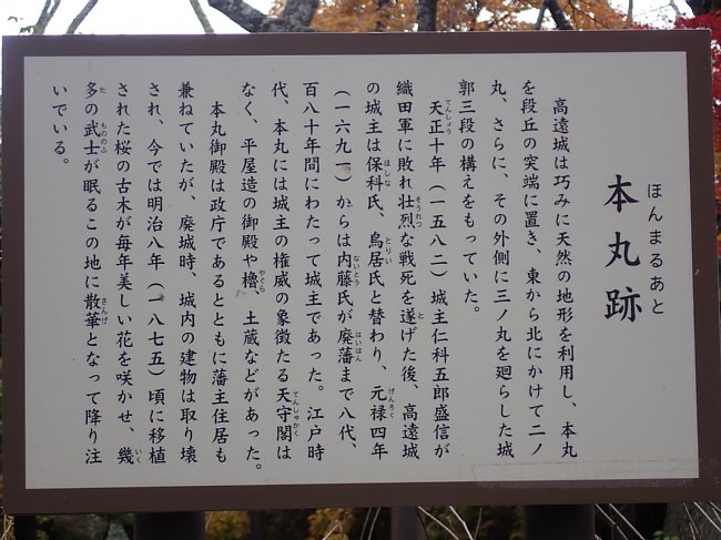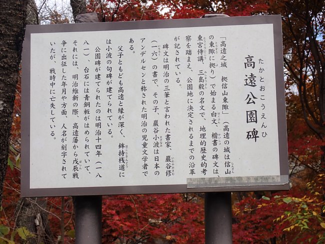 原村から桜で有名な高遠城址公園へ行き紅葉を楽しんだ。