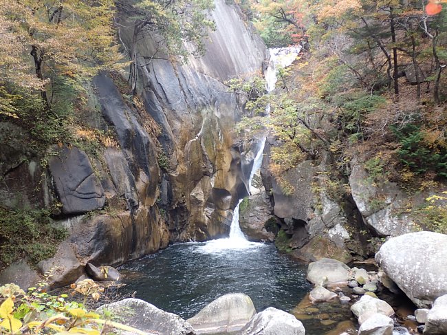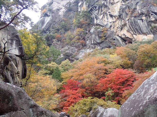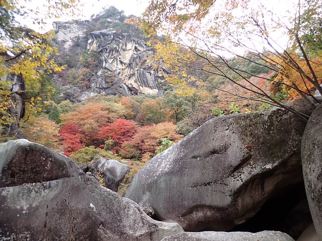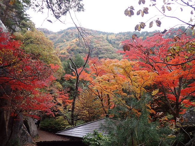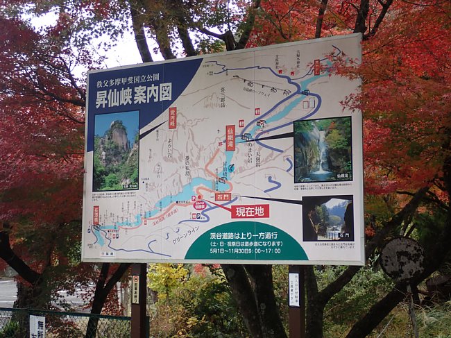 原村からの帰路、昇仙峡県営駐車場に立ち寄り、オムニバスで影絵の森美術館に上がり、仙娥滝から石門の紅葉の遊歩道を歩き、食堂一休で「ほうとう」をいただき昇仙峡県営駐車場から多摩に帰った。