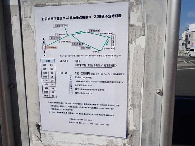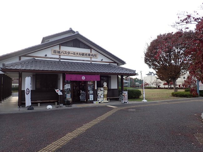観光拠点循環バスで忍城バスターミナルへ、観光案内所の右奥に忍城