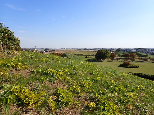 稲荷山古墳の奥に「古代蓮の里」の行田タワーが見える