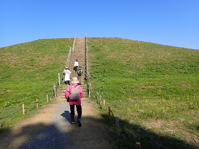 稲荷山古墳を振り返る、左が後円墳で右が前方墳