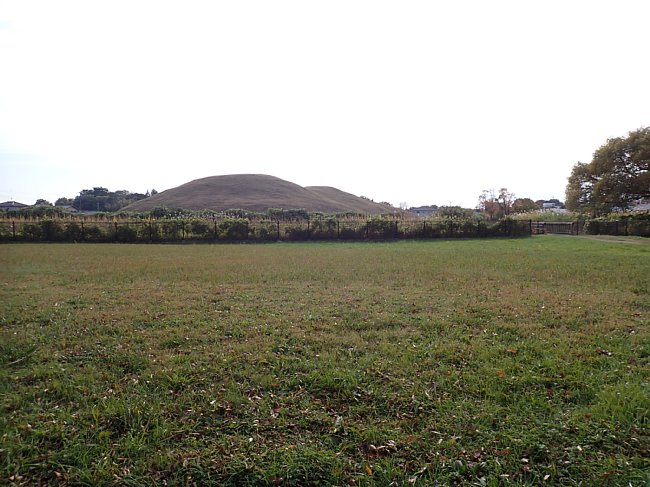 稲荷山古墳、前方後円墳の前方墳から後円墳を望む