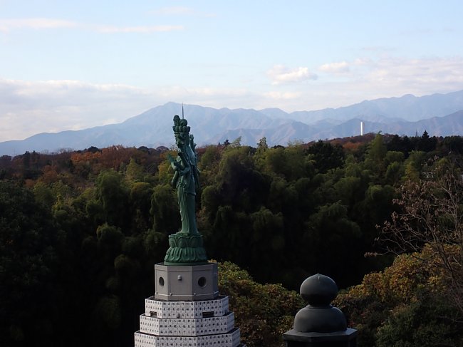 多摩平和長谷観音の向こうに丹沢の大山