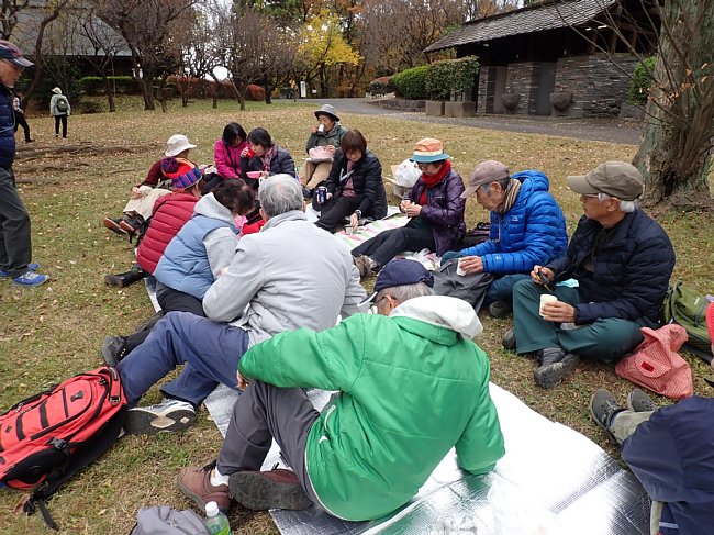 山の仲間と布田道を歩き、多摩市一本杉公園の旧加藤家で芋煮会をした。