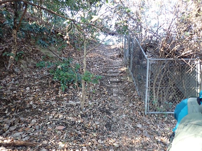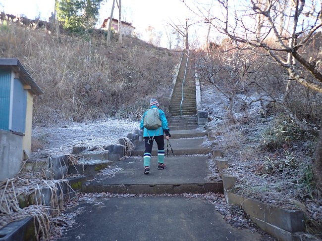 何の標識も無い拓大尾根取り付きの階段を登る
